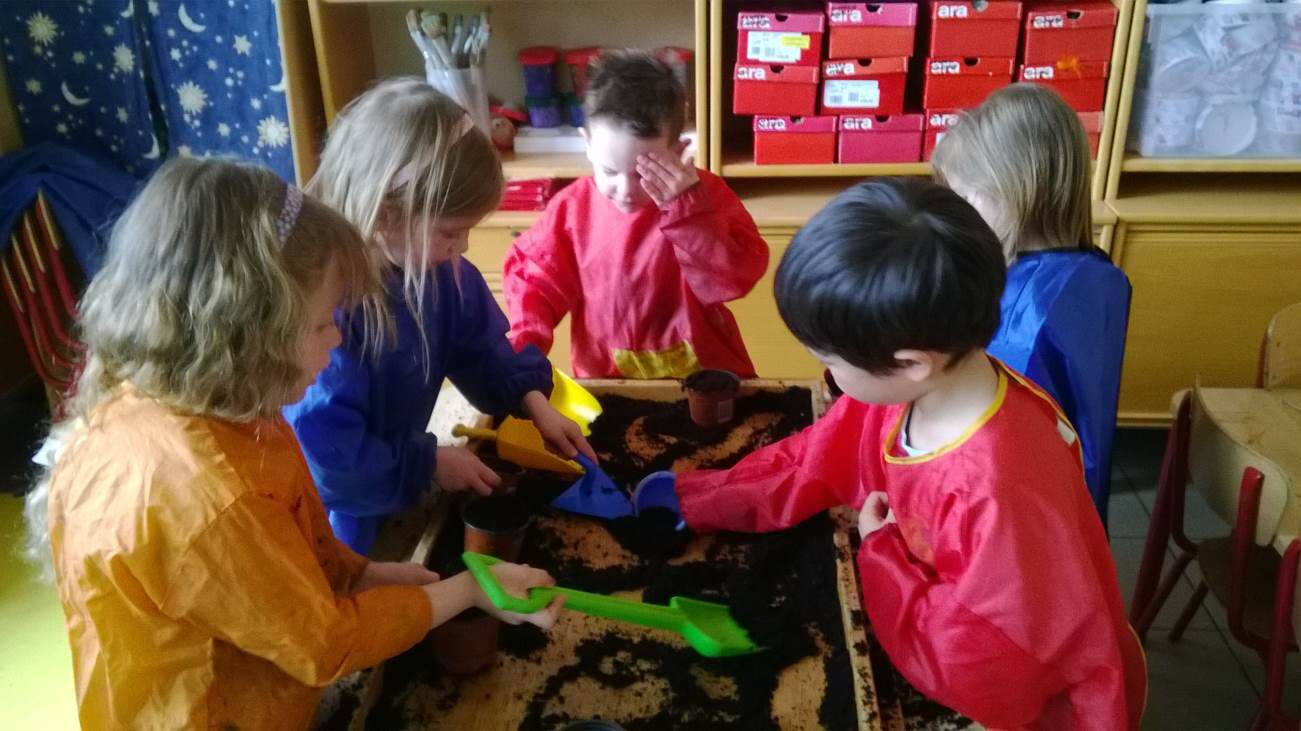 Klik op de afbeelding om de link te volgen Muz: drama: poppenspel: Jules en pompon zaaien bloemzaden in de tuin.