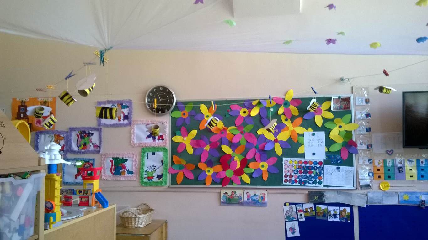 Muz: beeld: bloemen maken voor 't schoolfeest , versiering