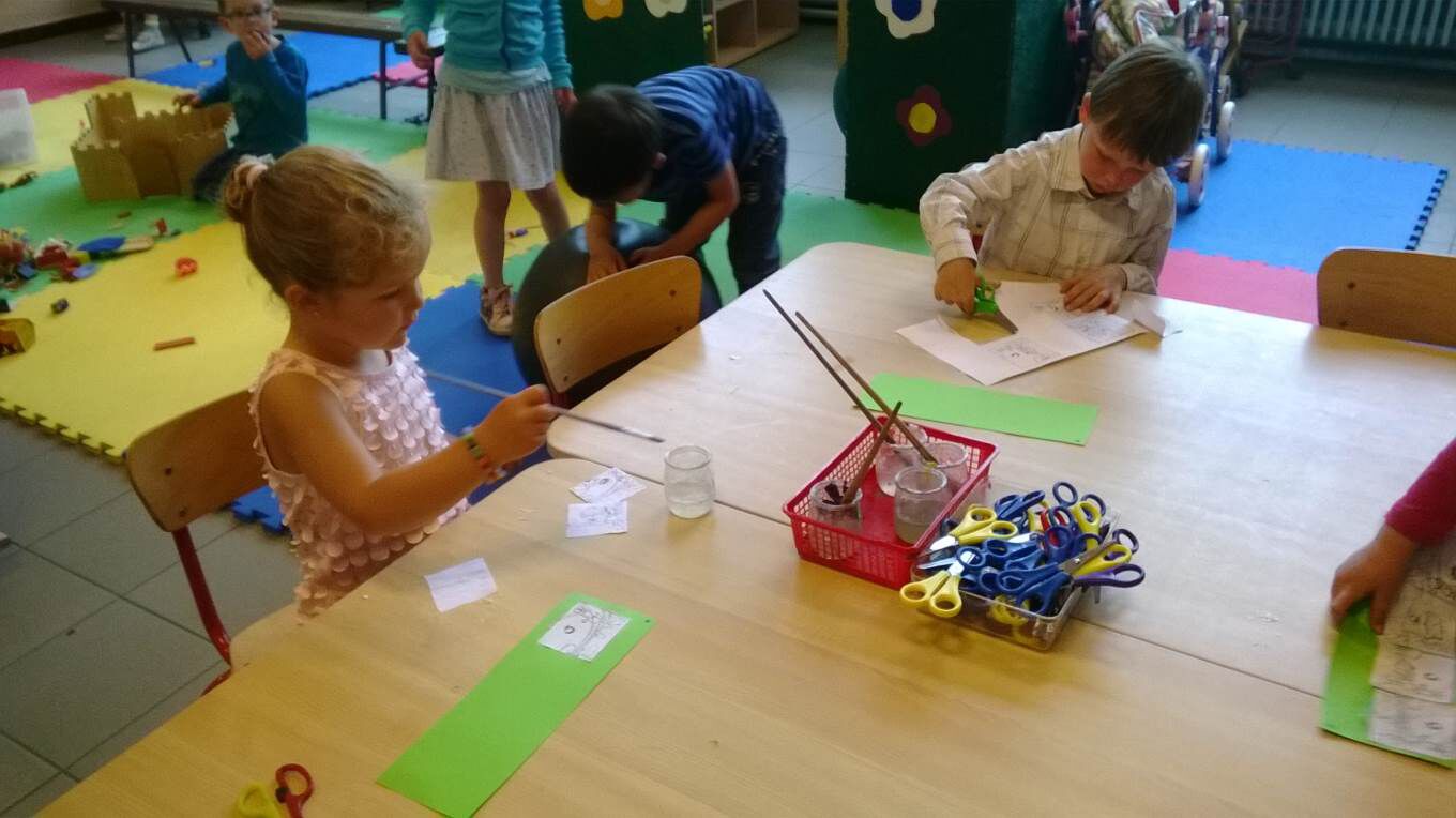 Muz: beeld : groepswerk: knutselwedstrijd: PMD sorteren is kinderspel voor idm . We maakten blikken papa's van klein naar goot .