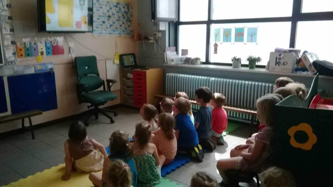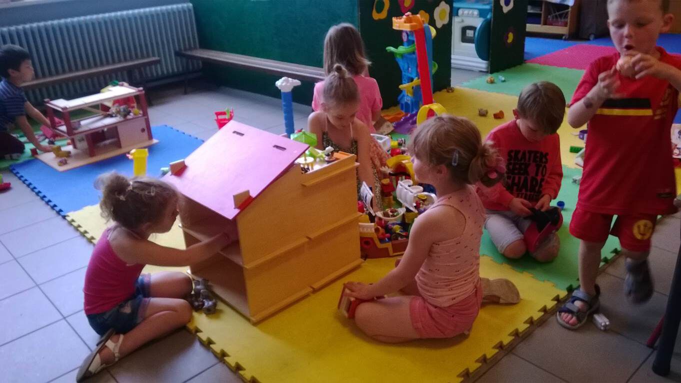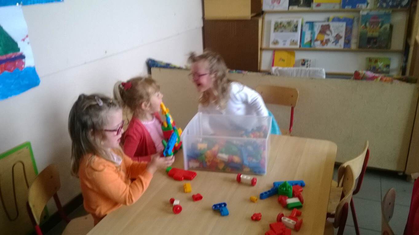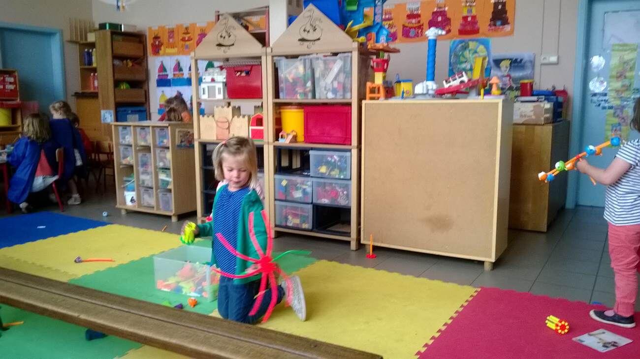 WO: Vrij spelen in de klas , onze laatste week school. Na de vakantie verhuist de 2 kleuter naar een ander klaslokaal, vandaar de verhuissfeer. Reeds van alles in de gang klaar gezet.