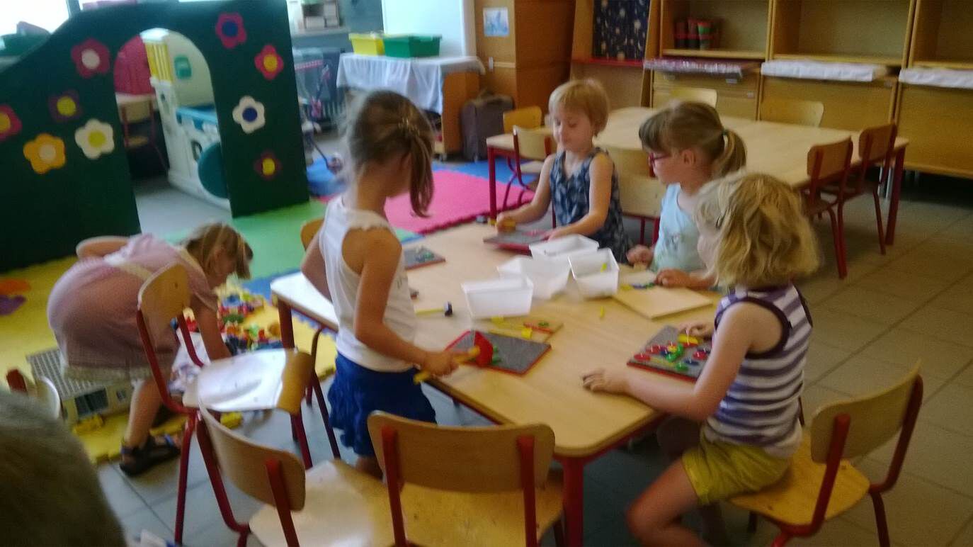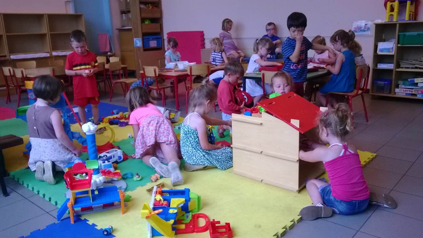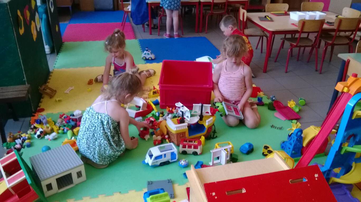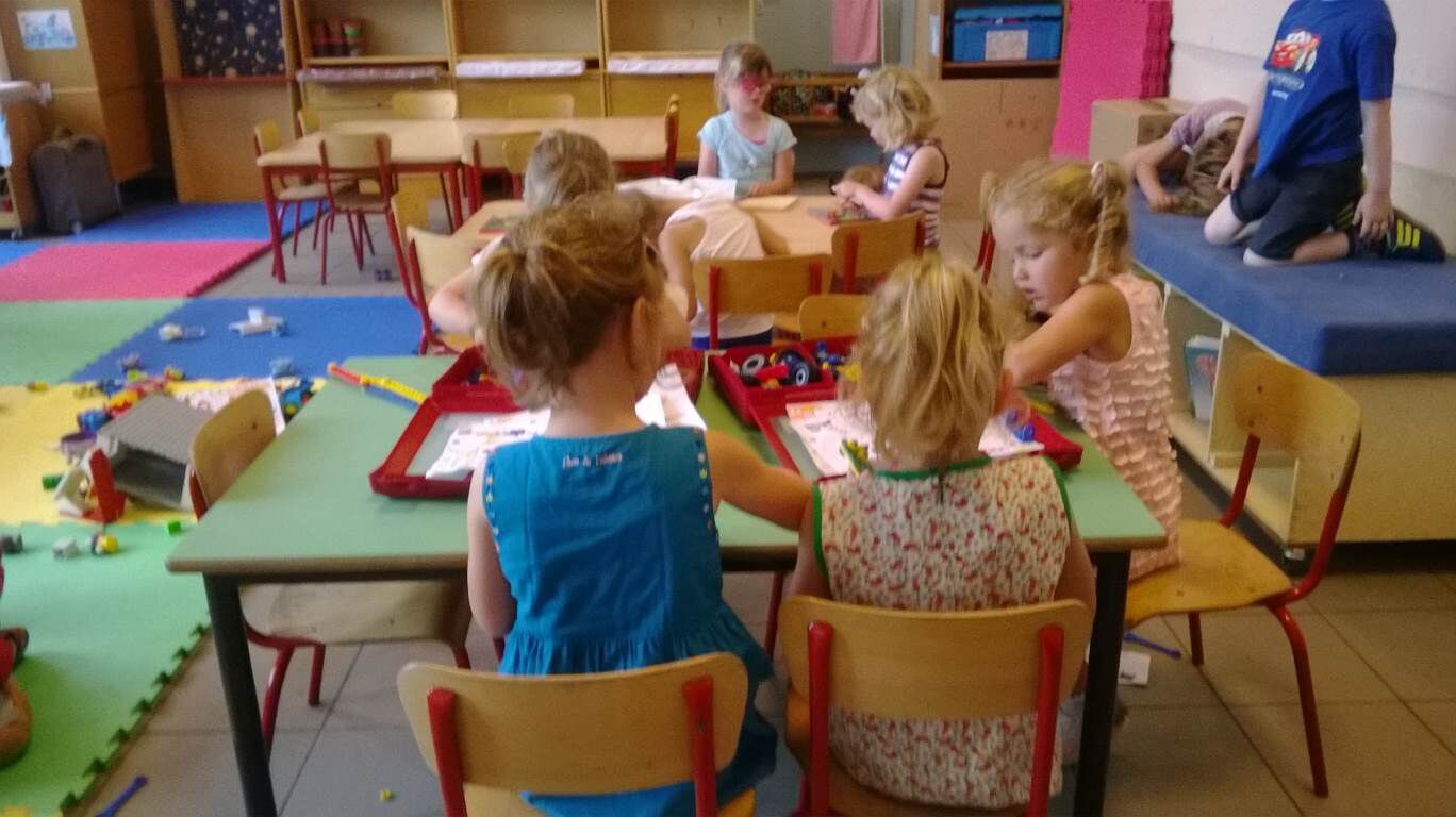 WO: Vrij spelen in de klas , onze laatste week school. Na de vakantie verhuist de 2 kleuter naar een ander klaslokaal, vandaar de verhuissfeer. Reeds van alles in de gang klaar gezet.