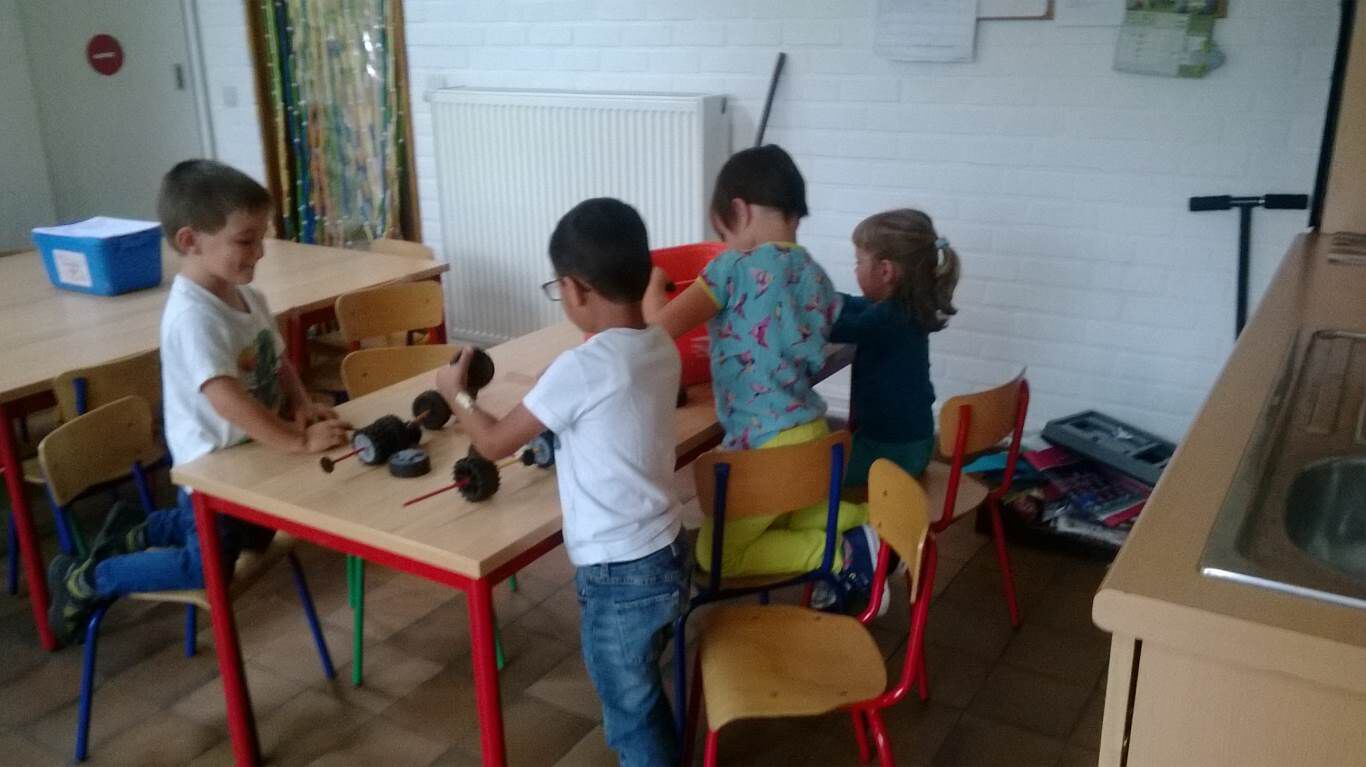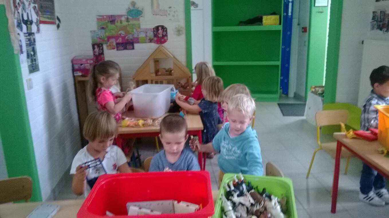 Wo: Vandaag konden de kinderen hun nieuwe klas bewonderen. Na een weekend hard werken had alles er een plaatsje gekregen. Bedankt aan alle helpende handen. Natuurlijk is er nog veel afwerking aan, maar we zijn gestart, en hopen dat alles vlug rond is. Zodat wij alles gezellig kunnen verder inrichten in ons gezellig leuk klasje . Juf Arianne en haar kapoenen.