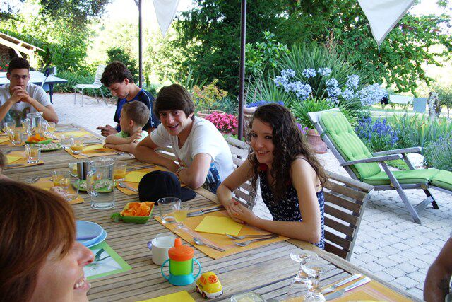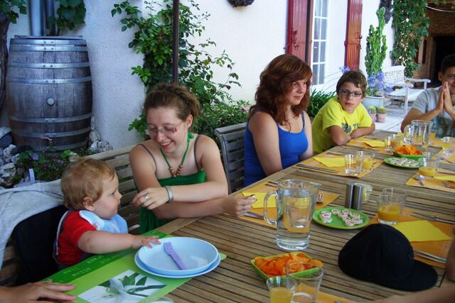 Ook Nils en Kerim zijn thuis, met de nodige vertragingen (die Franse spoorwegen toch ) waren ze uiteindelijk om 18u in Agen. Het werd dus haasten om op tijd thuis te zijn voor de table d'hôtes. We hebben vandaag uitzonderlijk gekookt zodat de 2 families al niet op hun eerste avond op zoek moesten naar een restaurant en dus hebben wij morgen een vrije dag met onze 2 zonen.