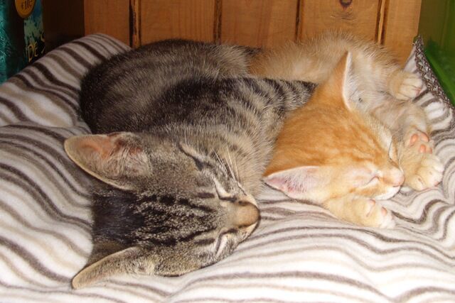 De kogel is door de kerk Onze 2 katertjes hebben eindelijk een naam! Rufus is het grijze tijgertje en Rosso het rosse tijgertje.