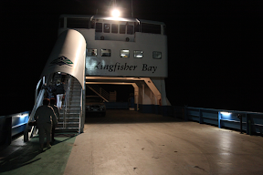 29 april... Tweede deel van onze reis in Queensland. Florette en Bob brengen ons naar het station in Brisbane. het is daar dat we de tilt trein nemen van 11U. Na regristratie van onze bagage nemen we afscheid van onze nieuwe vrienden en starten we onze treinreis van ongeveer 3u tot Maryborourgh. Door de hevige regens en overstromingen kan de trein zijn snelheid niet behouden maar de reis is aangenaam en we genieten van het landschap. Na de trein hebben een uur met de bus naar Hervey bay maar geen probleem onze bagage volgt.... In Hervey bay nemen we een taxi tot aan de haven en wachten we op onze pick up voor onze transfer. Een minibus brengt ons tot de ferryboot van Kingfisher bay resort, onze bagages blijven in de auto en worden direct naar onze kamer gebracht na aankomst met de boot, dus geen gesleur..... Natuurlijk is het donker als we aankomen maar onze kamer ligt verscholen tussen het groen en we horen rare diergeluiden, vogels ? kikkers ? of andere ? Morgen een rondrit in een 4x4...