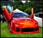 Deze auto(audi) Is verlaagd en er zijn anderen onderdelen op gezet.Er staat een spoiler op voor sneller te rijden.En 4 niewe carbonnen wielen.