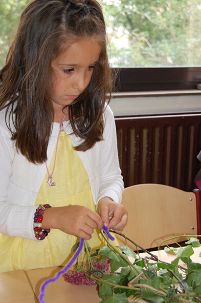 Nadat we allemaal getooid waren met bloemen, konden we gaan schetsen en uitwerken.