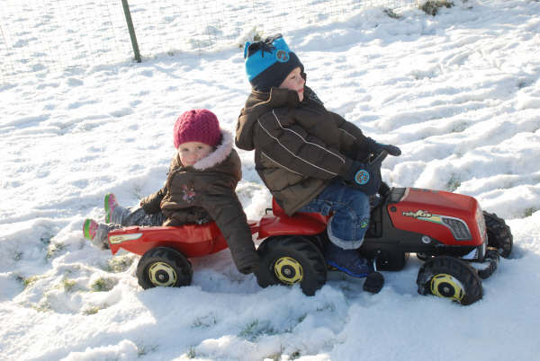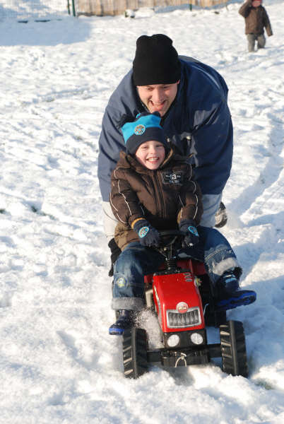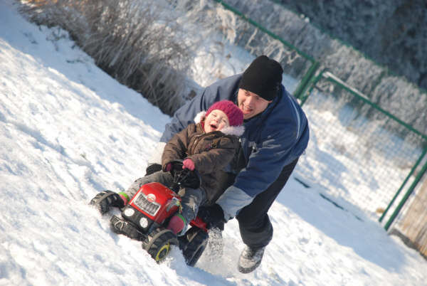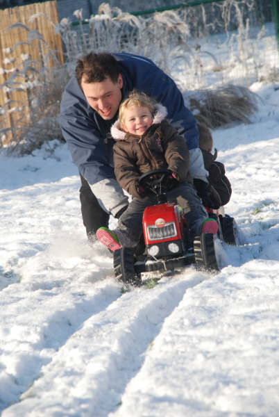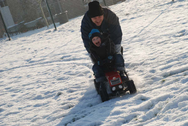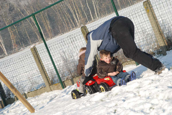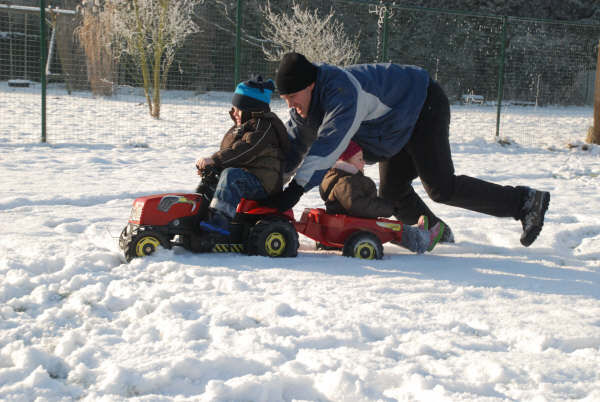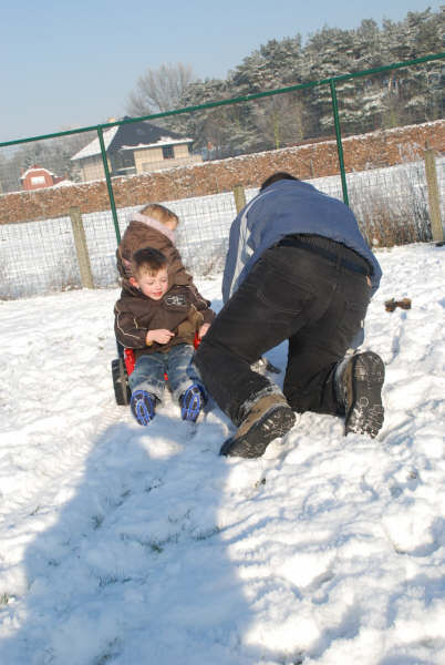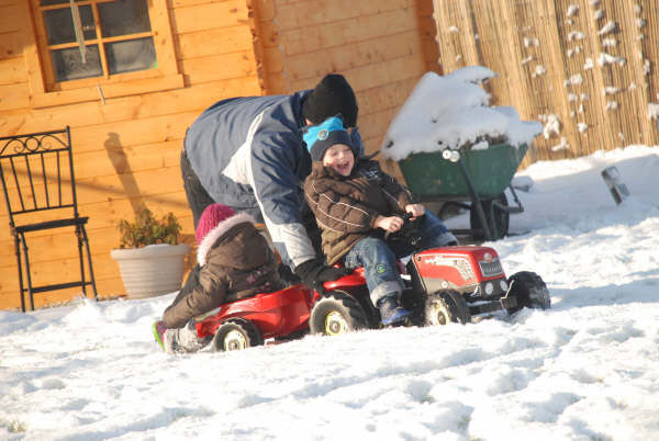 Sven was terug uit het buitenland en dat heeft hij geweten en de kids hebben zich goed geamuseerd in de sneeuw.