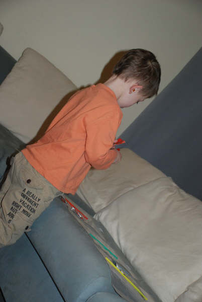 Jayden leert over de kleuren en daarom moesten ze prentjes zoeken in de 4 basis kleuren: rood, geel, groen en blauw.