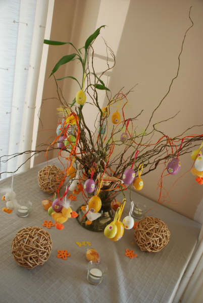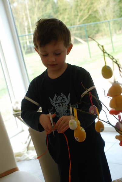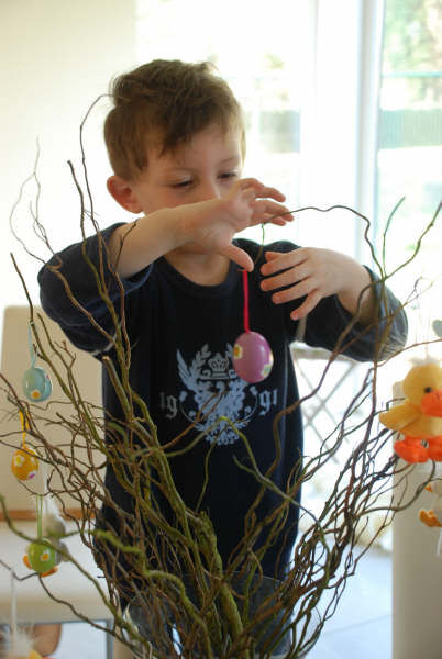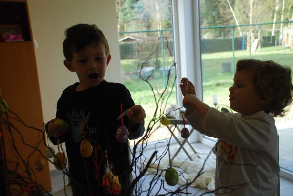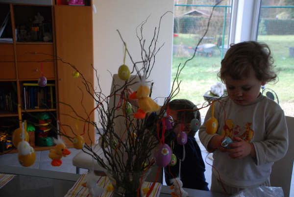 Zondag zijn we begonnen met de Paas decoratie en hebben de kids hun eigen paasboom mogen maken dus ja, we hebben er nu 2 in huis.