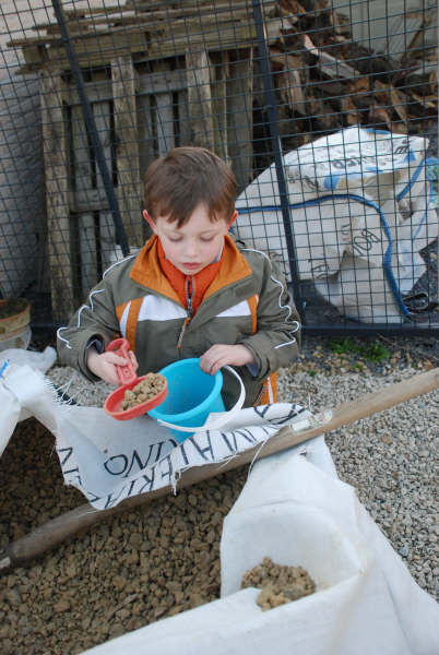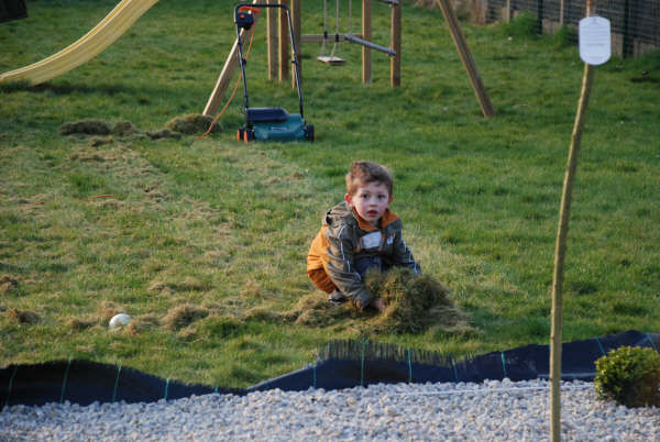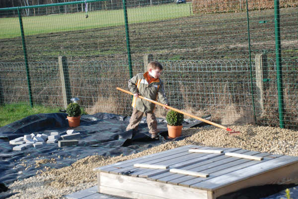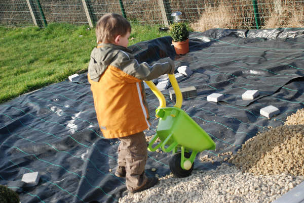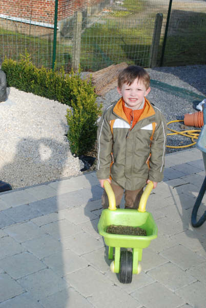 Nog steeds aan het profiteren van het goede weer om te werken in de tuin en Jayden is super enthousiast in het mee helpen!