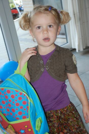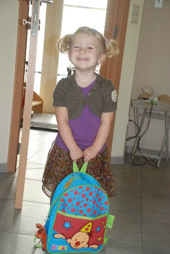 En Yanaë, doet traditie getrouw verder, loopt in het rond, jasje op het kapstokje, boekentas in het blokje, zwaai met het handje, een kushandje en floep de klas in.  hebben zelf tegen de juf moeten zeggen dat ze al in de klas zat!
