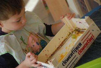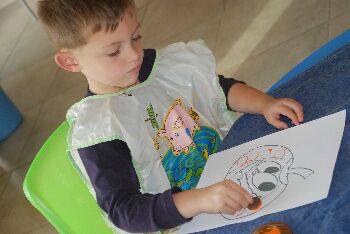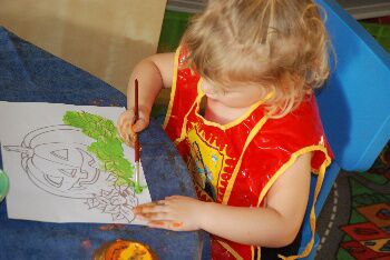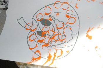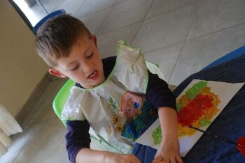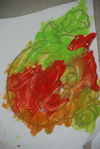 Toegepast: Knikkerverven - Stempelen met eikelhoedjes - Vingerverven - verven met de borstel