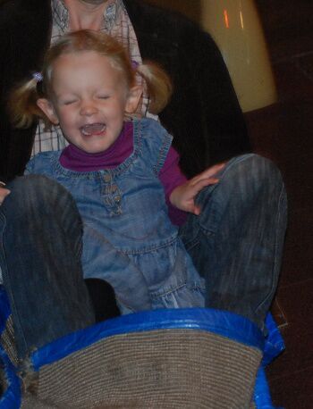 En om het eten goed te laten verteren ging bibi natuurlijk mee met de kids in zo'n rond tonneke dat we nog sneller konden gaan als de draaimolen! Plezier gegarandeerd!