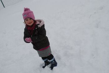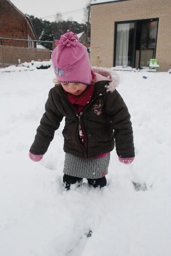 Yanaë haar sneeuwbotten verdwenen in de sneeuw. Tijd om terug naar binnen te gaan want een derde laag komt eraan!