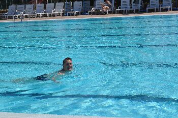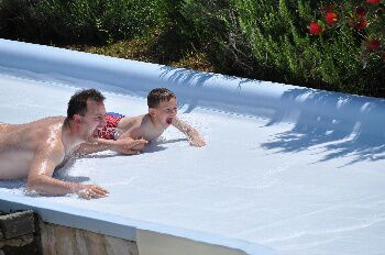 Alles inpakken, nog even plonsen in het zwembad en dan vertrekken naar onze nieuwe locatie...