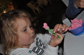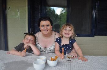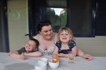 Nog een avondfoto van Yanaë haar eerste pizza en daarmee zijn we vertrokken voor een hele reeks foto's.