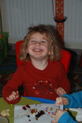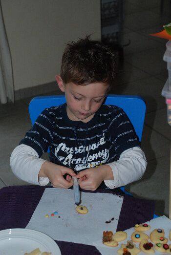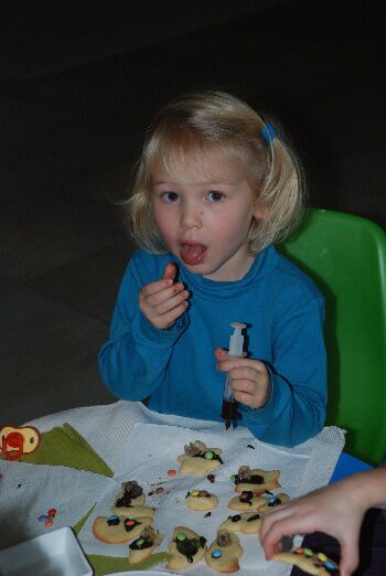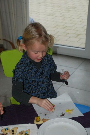And last but not least.... Koekjes versieren met chocolade en snoepjes...