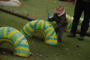Binnenspeeltuin, Yanaë op de pony en mini golf...