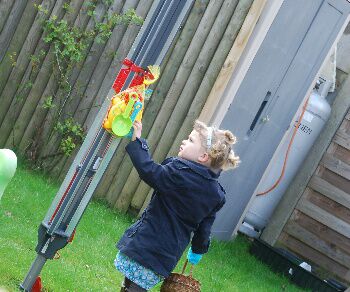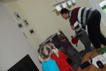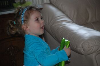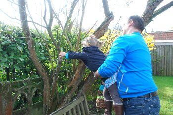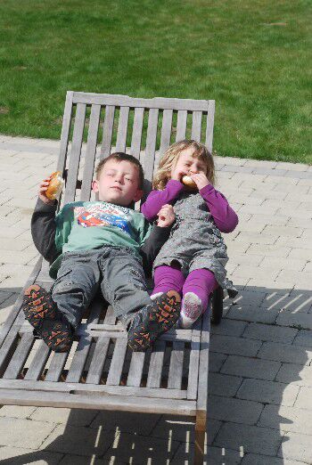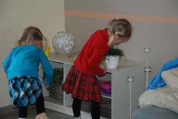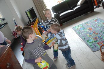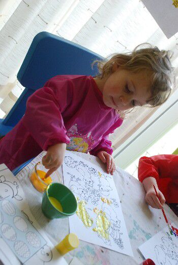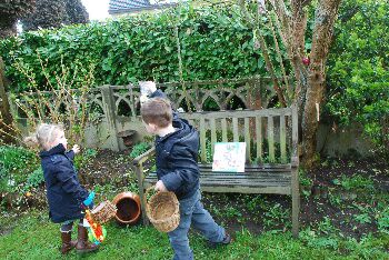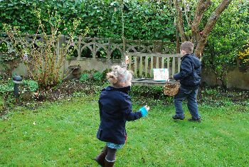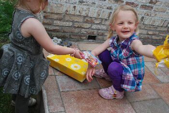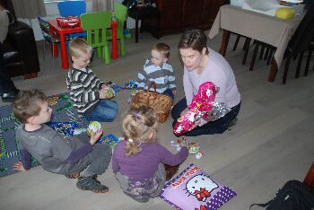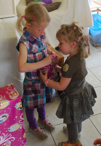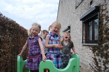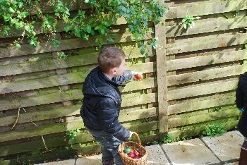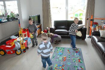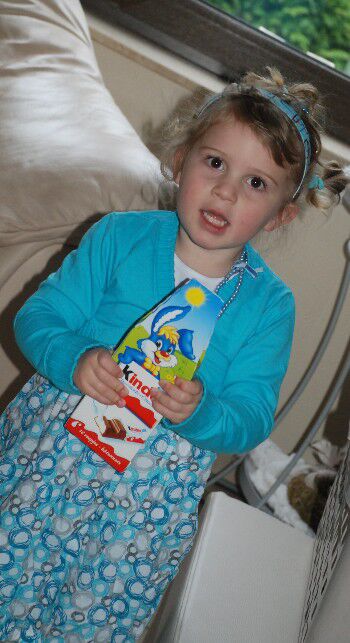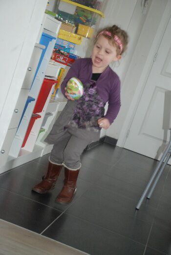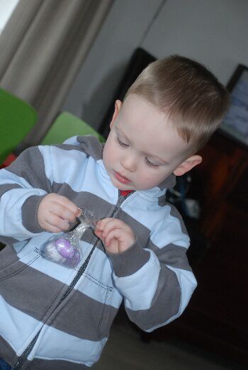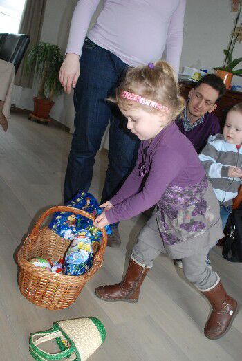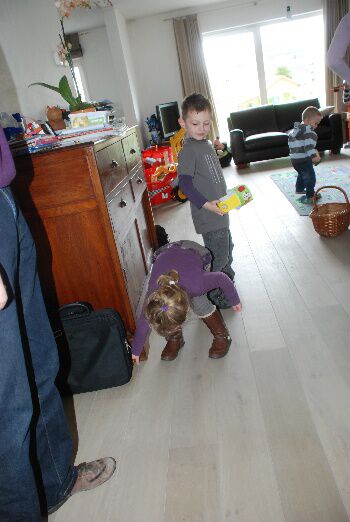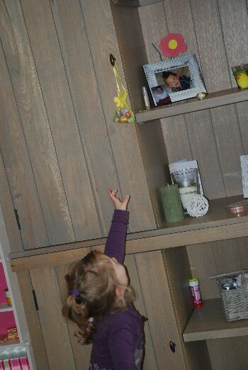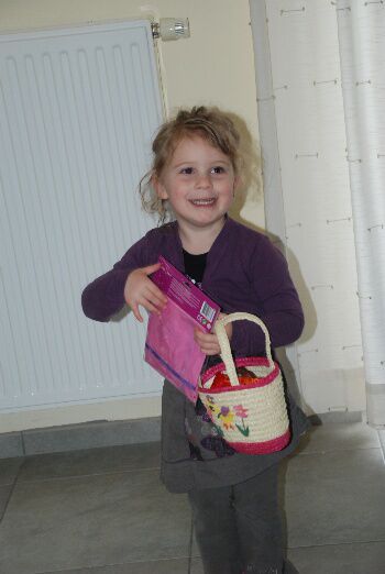 Om zeker te zijn dat de Paashaas wel geweest was, gingen we eens boven blijven totdat de bel ging (dan waren Eline en Amelie daar) En daarna was het uitleven en zoeken en zoeken en zoeken!