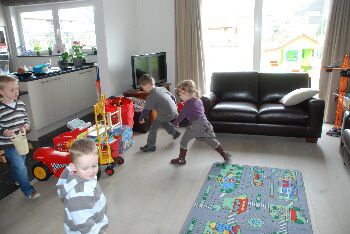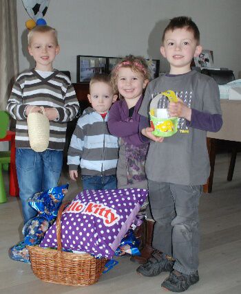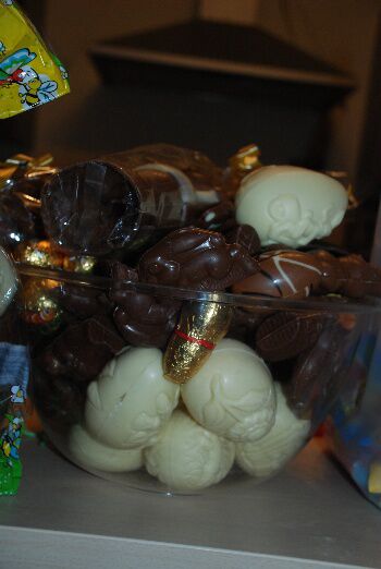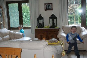 En door het slechte weer waren de Paashaas en de klokken binnen gekomen... AMAI!!! wat waren die tekeer gegaan!