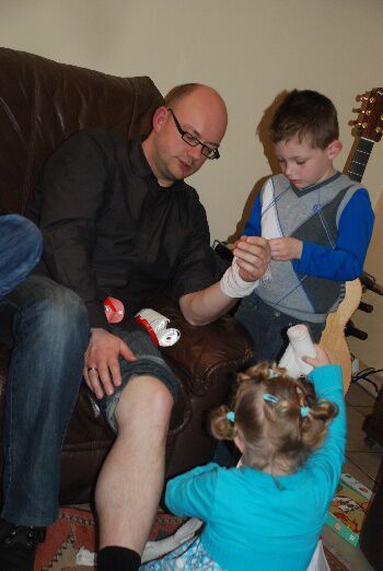 Let vooral op hun nieuwe echte werkhandschoenen van Mickey Mouse.