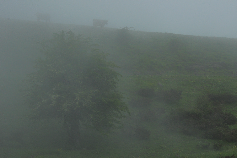 Hey daar Van laatste post die ik plaatste was de inkt nog niet droog of deze was reeds achterhaald. Ik schreef dat ze dit weekend goed weer gaven in de Picos de Europa. Dat was ook, maar na het schrijven bekeek ik nog eens de voorspellingen. Het zonnig weekend was opgeslorpt door wolken. Dju toch Toch beslist om naar Lagos de Govadonga aan de andere kant van de Picos te rijden. Onderweg bleek dit de juiste beslissing. De route was wondermooi. Eenmaal daar was het alweer een grijze bedoening. Bij het naar boven rijden met de auto was het onderste meer, Lago de Enol nog zichtbaar (foto met 2 kalfjes) het tweede, Lago de la Ercina bleef aan mijn ogen onttrokken. Eens terug naar beneden bleek zelf Lago de Enol verdwenen, opgeslorpt door mist en regen. In de zomer moet dat daar overdreven toeristisch zijn. Bijgevolg staan daar overal bordjes dat je daar niet mag overnachten, niet met een auto, noch met een tent. Beneden een parking tussen mobilhomes gevonden. De volgende ochtend zag het er weerom niet al te best uit. Het veranderde weerbericht indachtig dat gans het weekend tristesse voorspelde, gaf de doorslag. Vrijdagochtend met pijn in het hart figuurlijk mijn boeltje samengepakt en vertrokken richting Pyreneeën. Jammer, wat ik met mijn eigen ogen van de Picos zag was prachtig, wat ik met mijn eigen ogen op fotos heb gezien was een overtreffende trap waard. Nog eens terugkomen? Misschien wel, maar wie zegt dat ze dan haar sluier afneemt. En het is niet bij de deur hé. Vrijdag dus zon slordige 400km gereden om in Lekunberri voor de eerste keer een camping op te zoeken. Wat een luxe zon warme douche en stromend water. Je weet pas alledaagse dingen opnieuw te waarderen wanneer je ze een tijdje moet missen. De volgende dag San Miguel de Aralar beklommen. Een doodlopende col die zoals de naam doet voorspellen, eindigt bij een heiligdom. De ganse beklimming mij zitten afvragen of dit nu de Pyreneeën zijn of niet. Net niet denk ik. Na de beklimming nog een deugddoende douche en tijd om andere oorden op te zoeken. Zon 70 a 80 km verder in Erratzu terecht gekomen. Gisteren, zaterdag Puerto de Izpegui beklommen naar de Franse grens. Afgedaald Frankrijk in om dan Col d Ispéguy (zelfde, andere kant) aan mijn palmares toe te voegen. In de namiddag postgevat op diezelfde col om de nacht door te brengen. Nu, zondagnamiddag sta ik hier nog, wellicht voeg ik daar komende nacht nog aan toe. Geen idee of ik nu in Frankrijk of Spanje ben. Misschien loopt de grens wel door mijn busje? Wat ik wel zeker ben, is dat ik in mijn geliefde Pyreneeën ben, Les Pyrénées Atlantiques om precies te zijn. De ontgoocheling van de Picos is onmiddellijk verdwenen als sneeuw voor de zon. Zon en warmte mag je letterlijk nemen, maar hier komen blijft altijd iets speciaals voor mij. Voorlopig geen bergketen waar ik liever (terug)kom. Moeilijk uit te leggen waarom, maar het is gewoon zo. Deze voormiddag de wandelschoenen eens aan een echte test onderworpen. Alhoewel niet zo ver gewandeld, want het wolkendek werd steeds donkerder om rond 13u hier de boel even op stelten te zetten. Vochtige koele lucht botst hier op warme droge lucht vanuit Spanje en daar komt geregeld gekletter van. Meestal s avonds, blijkbaar ook soms overdag. Tijdens de wandeling opnieuw wat fotos genomen van Vale Gieren die hoog en ver vlogen. Nu zit ik hier in mijn busje op Word te typen, om het straks te plakken op blog en komt er net zon gier op zon 30m van mijn busje vliegen. Eindelijk een scherpe foto die ik niet moet inzoomen. Heerlijk moment dat nog maar eens onderstreept wat een zalige plaats dit is. Tot de volgende