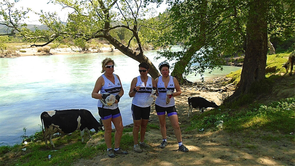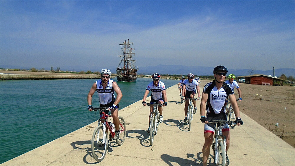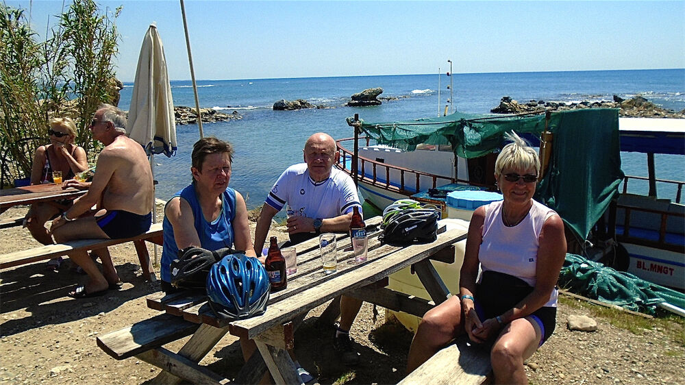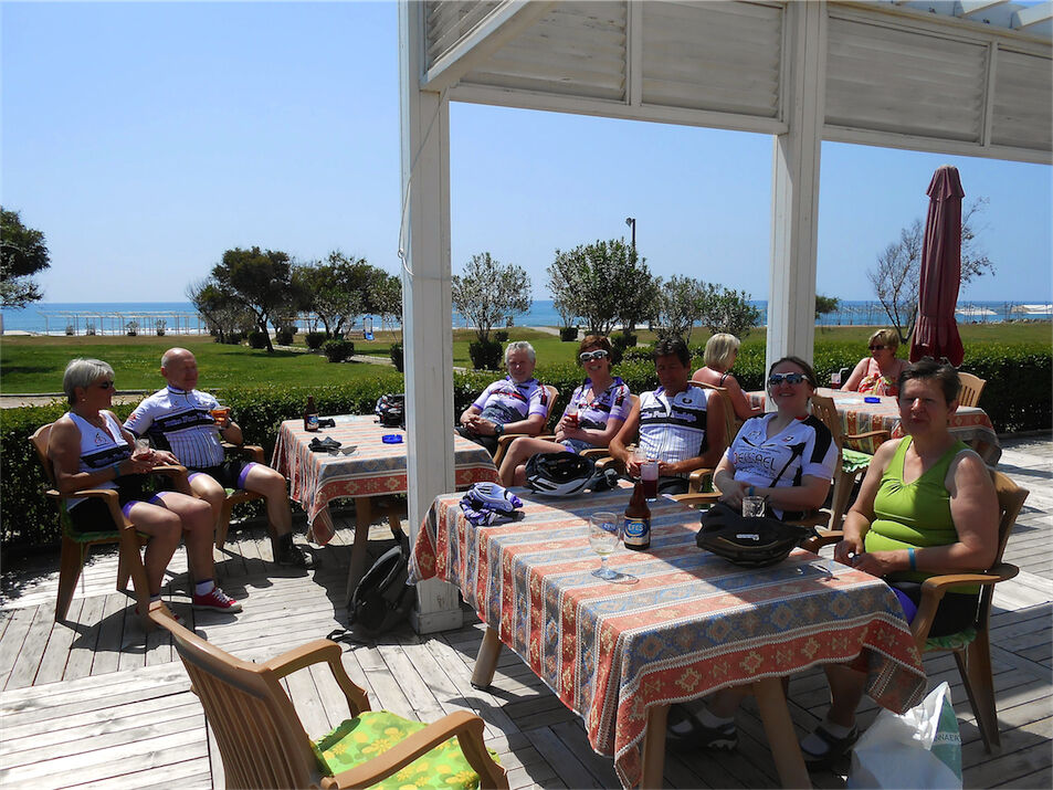Het weer zie je op de foto's. Niet goed, maar heéél goed !!! Met 2 groepen naar Manavgat gefietst en terrasje gedaan aan de rivier bij Taxi Pub. Respectievelijk 59 km en 46 km. In de namiddag met een groepje Noorse jongeren 35 km meegefietst.