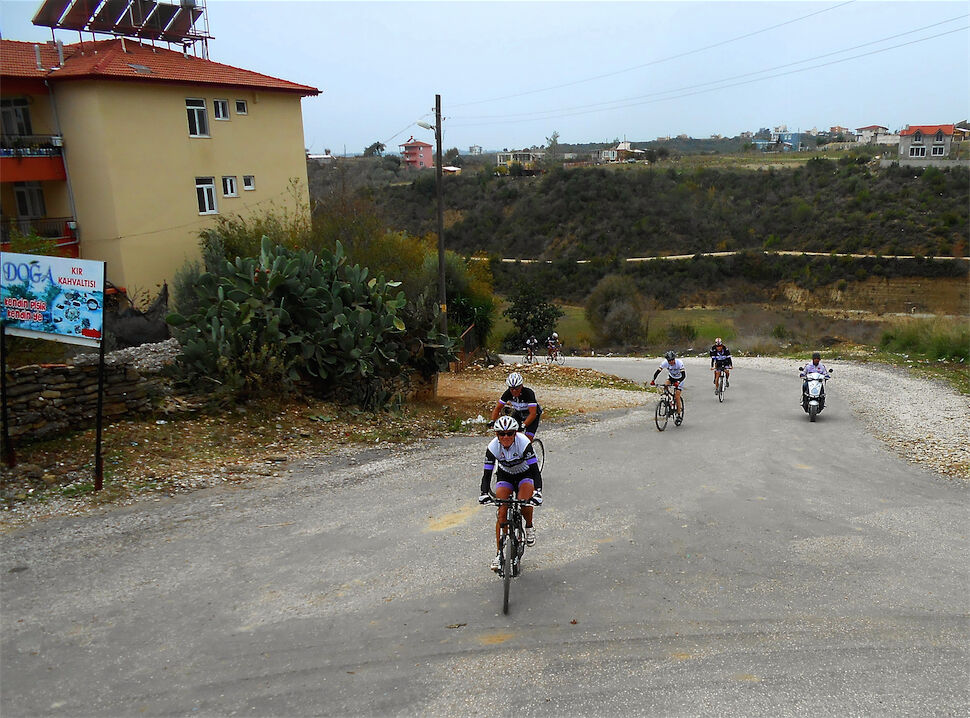 Met mooi weer deze dag begonnen. Na de middag kwam bewolking en bij het vallen van de avond is het beginnen regenen. Onze tradionele zondagsrit vandaag langs Titreyengol - Sorgun en Side. Met 2 groepjes respectievelijk 50 km en 63 km