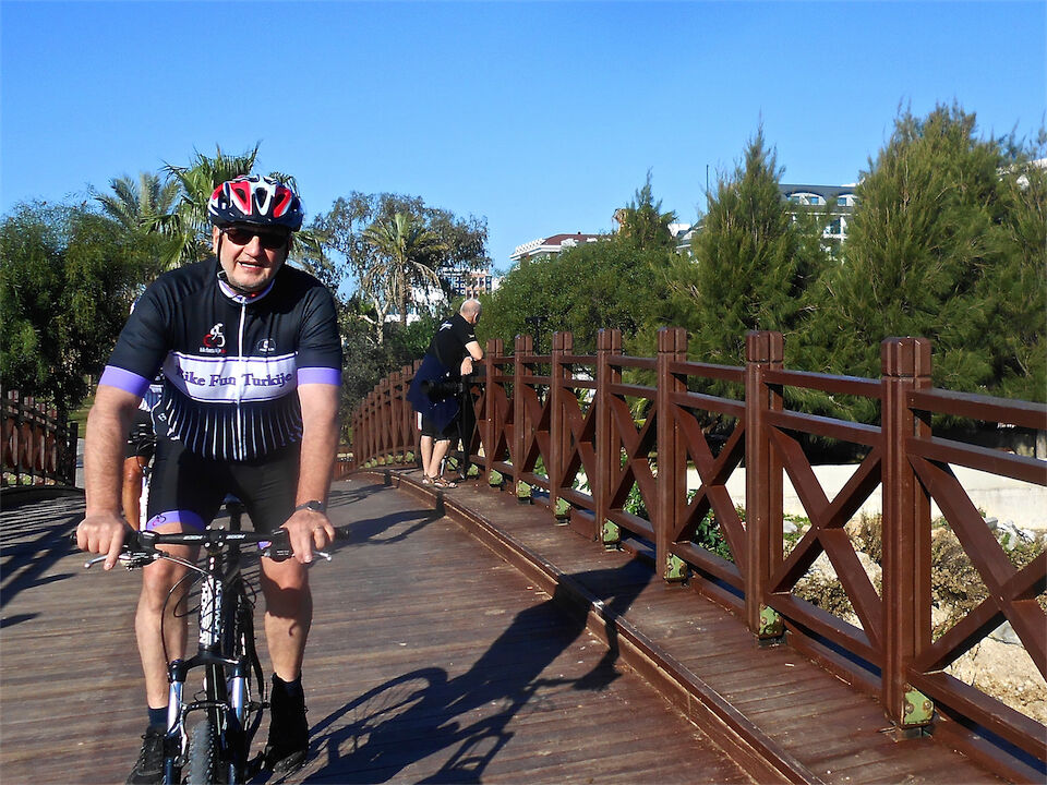 Geen witte kerst maar wel een heel mooie kerstdag. Verkenningstocht gedaan langs de Manavgat rivier, veel off-road en bijna volledig vlak. 70 km. Temperatuur in de schaduw op ons terras om 13u. Na de middag genoten van de zon, gekregen boek van en over Hennie Kuiper gelezen en kwartiertje gaan zwemmen in zee. Zelfs tijdens de kortste dagen kan het weer hier geweldig meevallen. bij Hotel Side Star Resort *****.