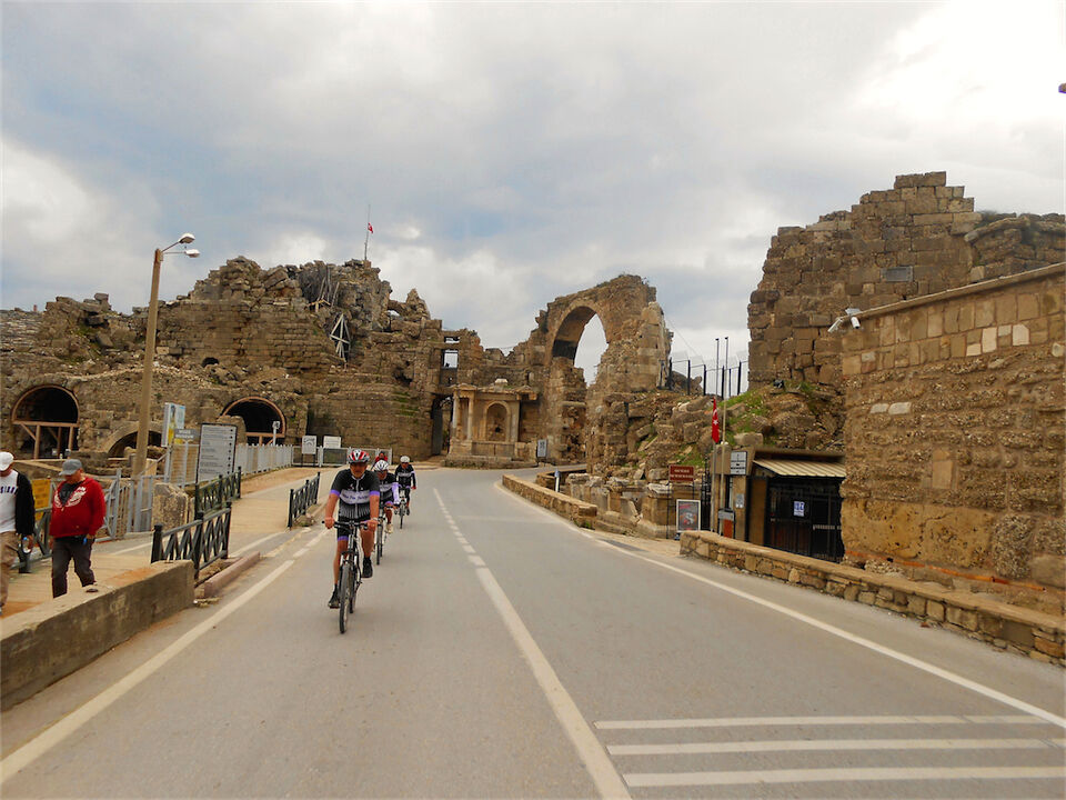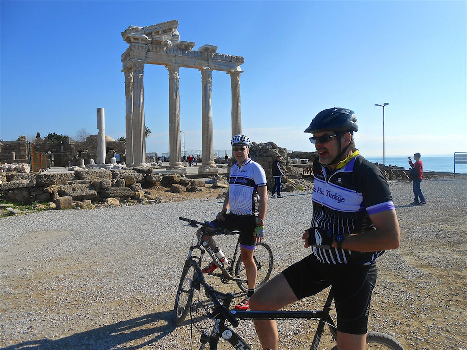 Schitterend weer. Volop zon en een helderblauwe hemel. Naar Aspendos gefietst via enkele nieuwe off-road wegen. 64 km en 465 hoogtemeters bij Hotel Side Star Resort