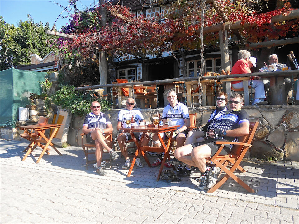 Schitterende dag vandaag. Enkele foto's vanop ons terras deze morgen om 7u. Vandaag hebben de fietsers 55 km gedaan. Ikzelf ben wat gaan zoeken naar nieuwe wegen, maar niets dat bruikbaar was gevonden. 35 km