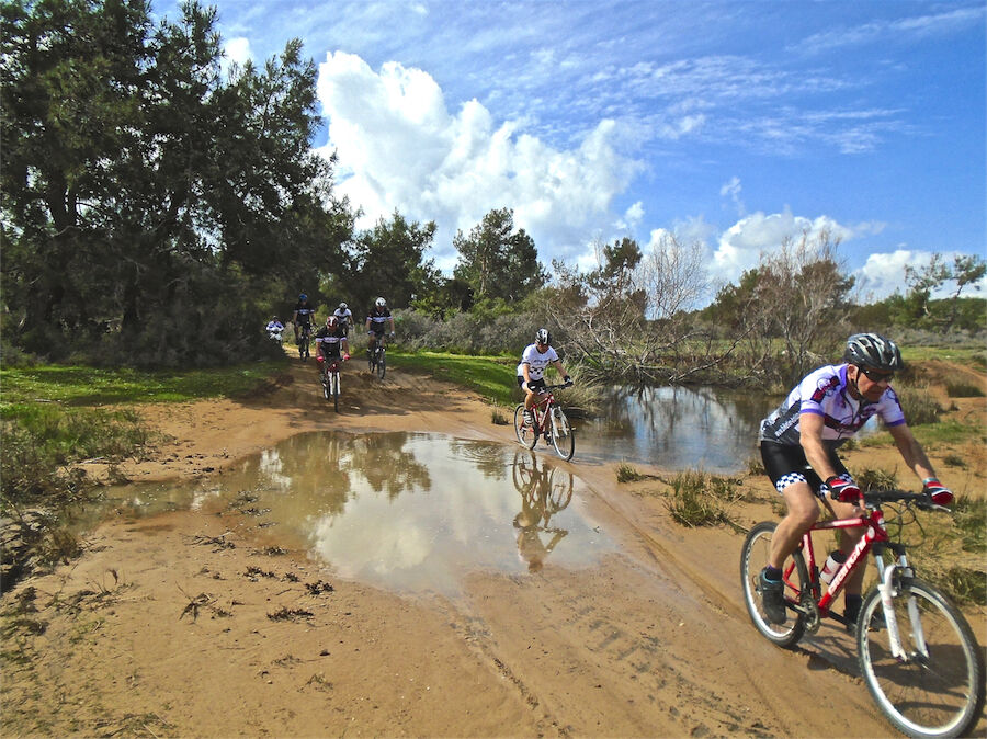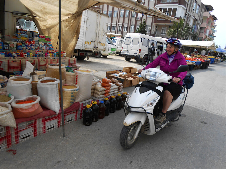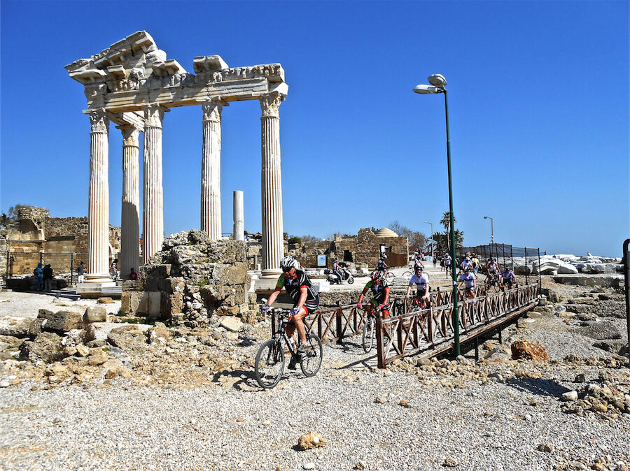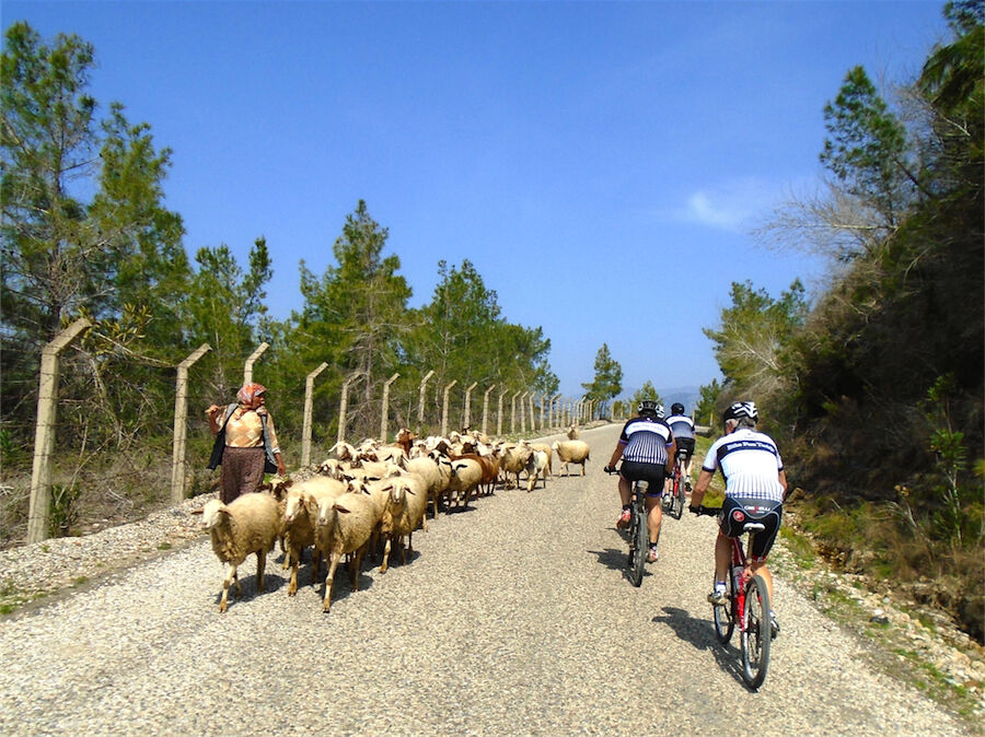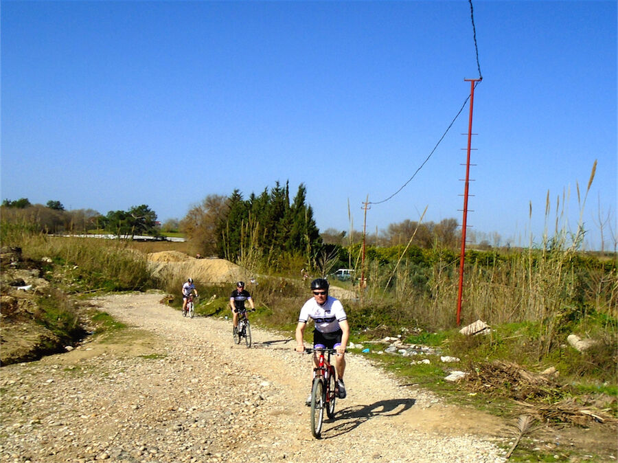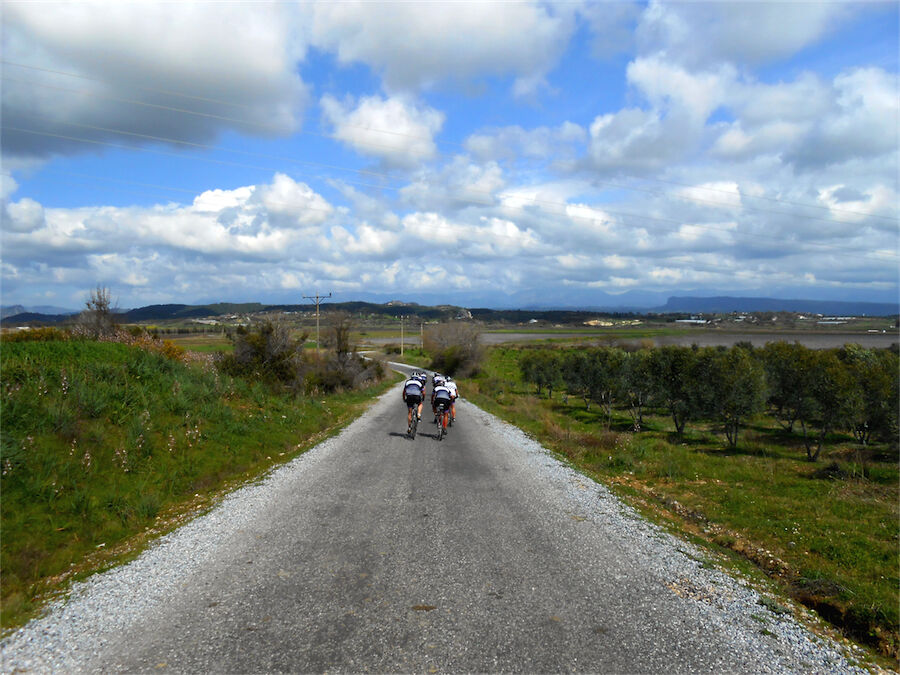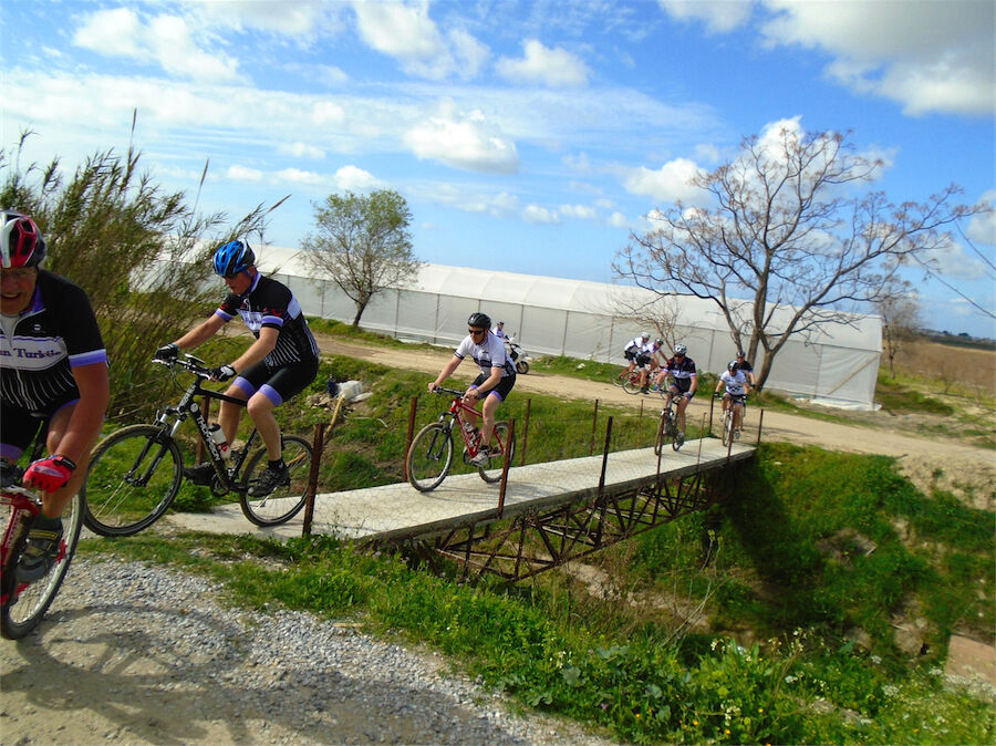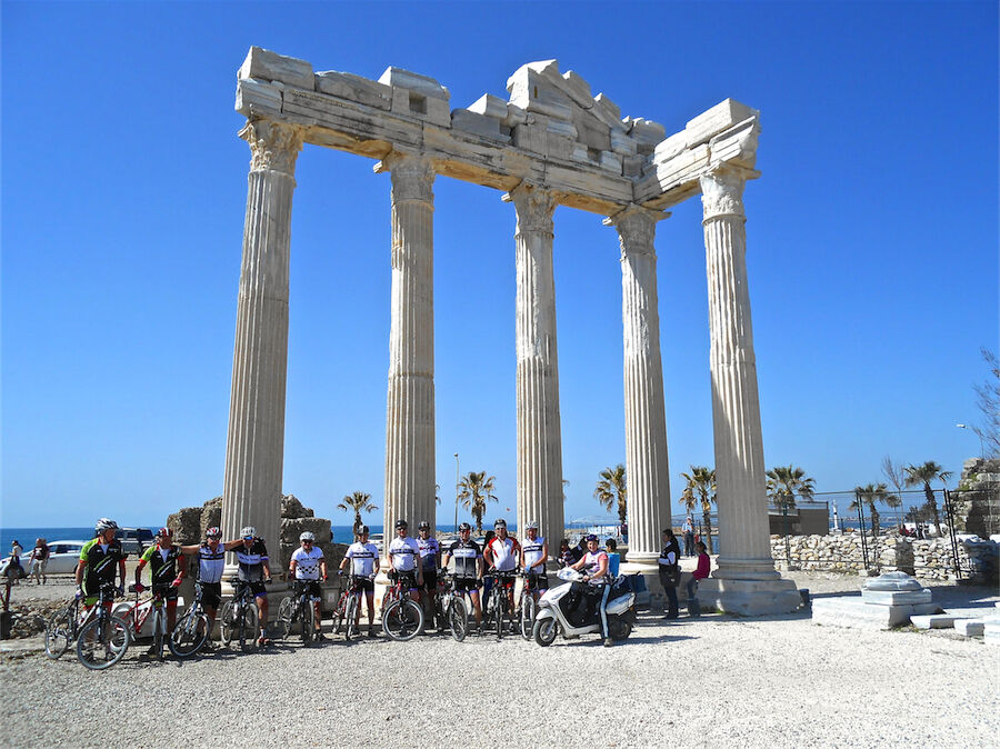 Zon en bewolking. Met 2 groepen gefietst. Een groep geplande tocht langs Aspendos gedaan. 66 km. Andere groep door zware bewolking op hun route een nieuwe tocht gedaan met nieuwe off-road wegen. 73 km