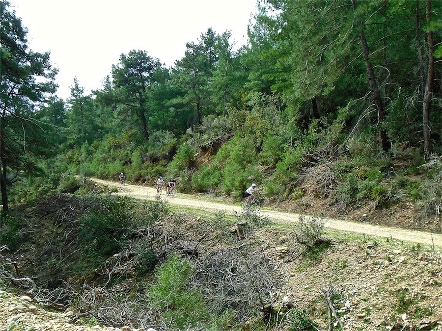 Schitterend weer. Met 2 groepen gefietst in de bossen en heuvels van Yenikoy en Evrenseki. Groepje dat 63 km en 910 hoogtemeters had bij terugkomst in hotel. Ander groepje 61 km en 415 hoogtemeters.