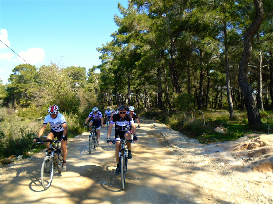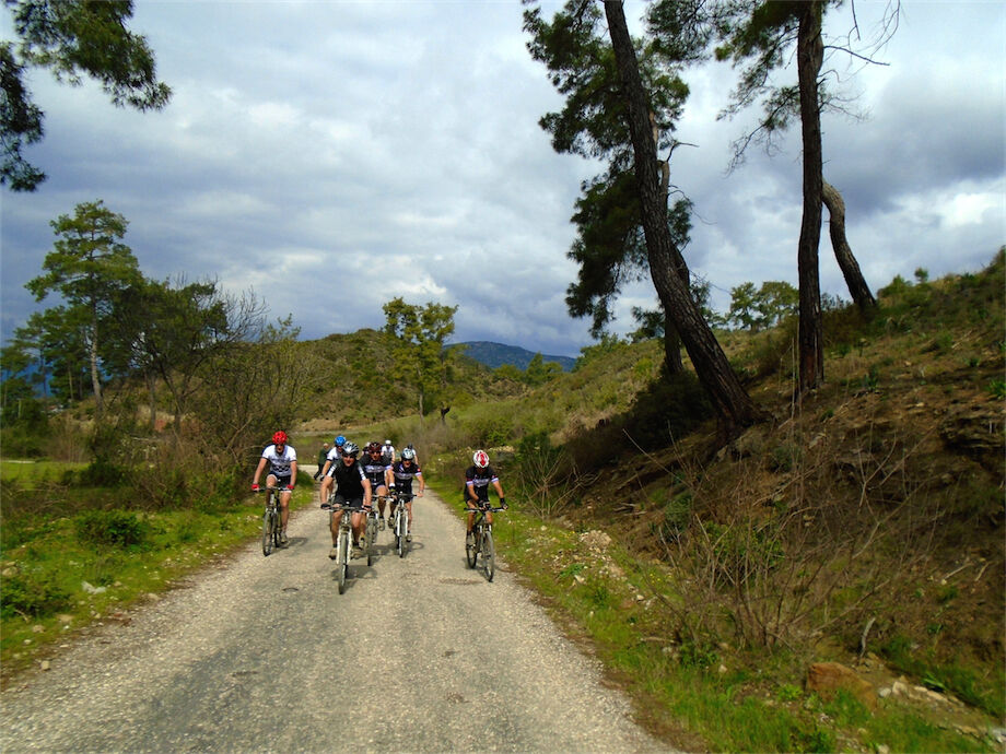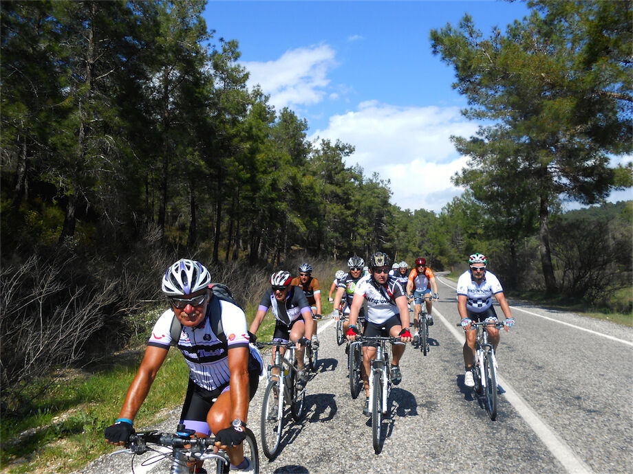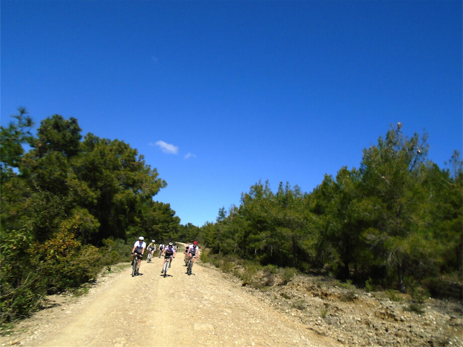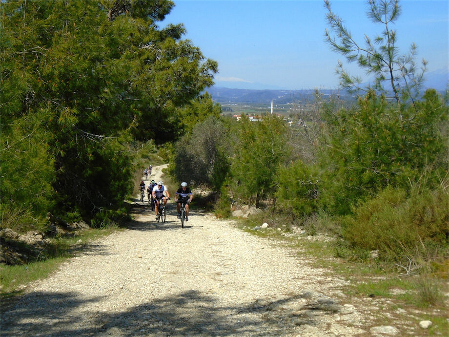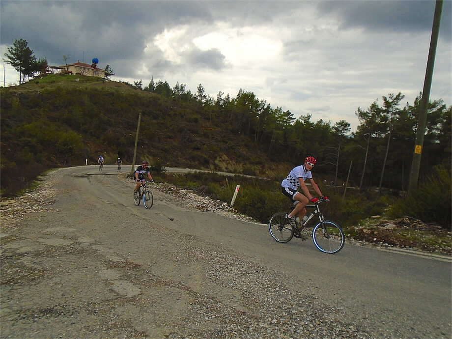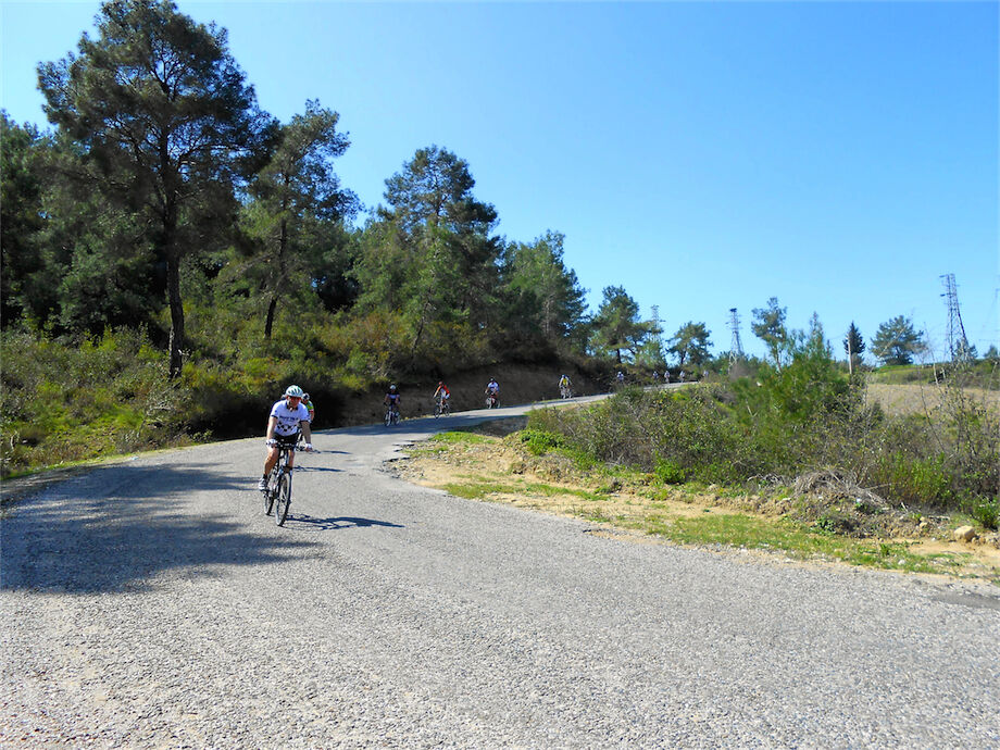 Schitterend weer. Met 2 groepen gefietst in de bossen en heuvels van Yenikoy en Evrenseki. Groepje dat 63 km en 910 hoogtemeters had bij terugkomst in hotel. Ander groepje 61 km en 415 hoogtemeters.