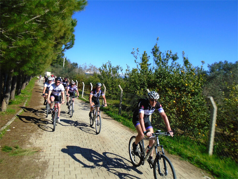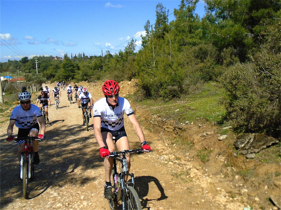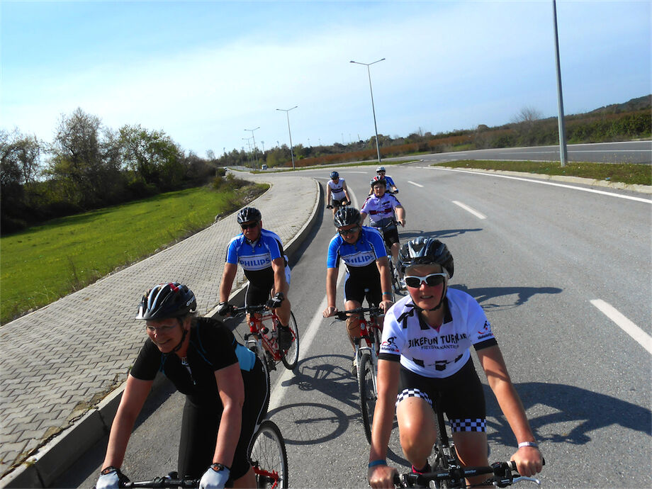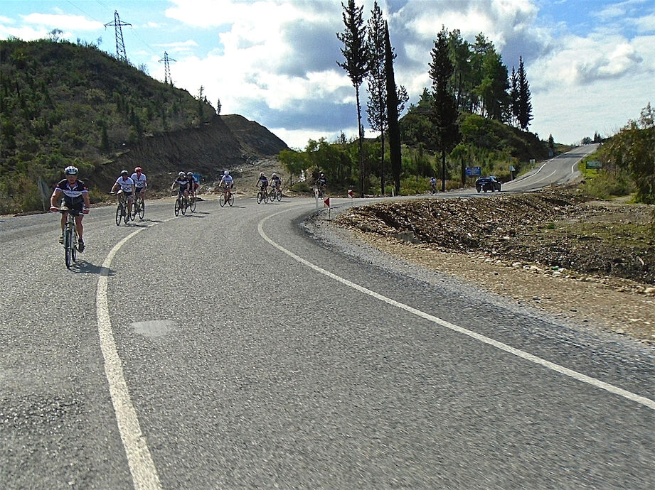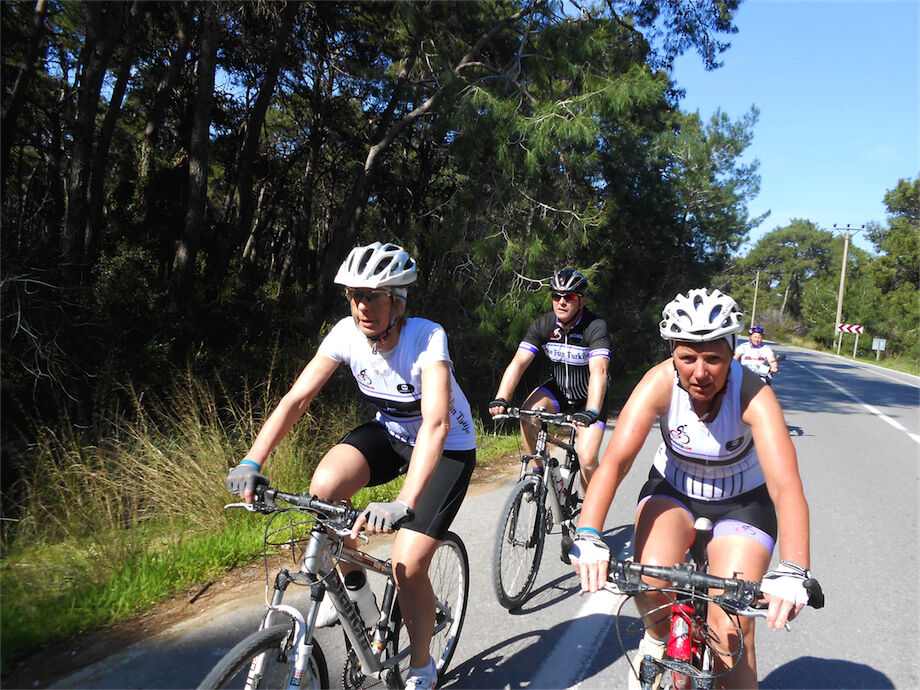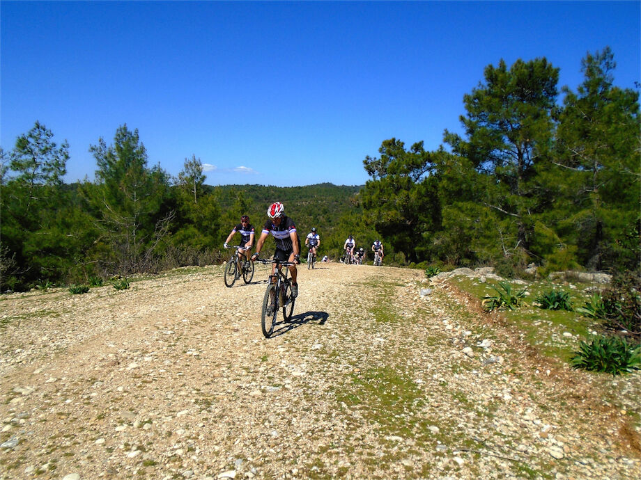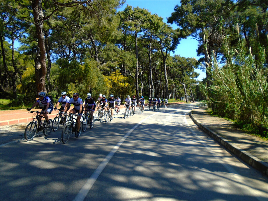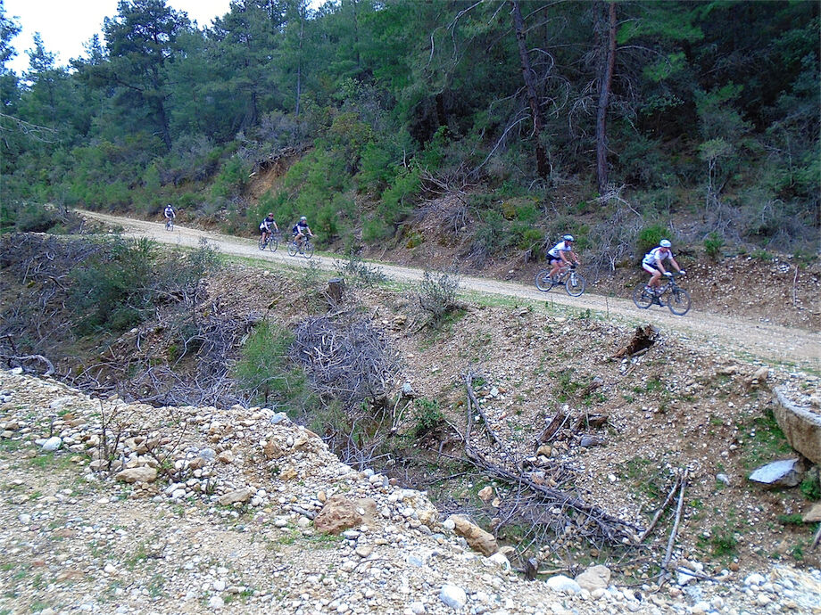 Schitterend weer. Met 2 groepen gefietst in de bossen en heuvels van Yenikoy en Evrenseki. Groepje dat 63 km en 910 hoogtemeters had bij terugkomst in hotel. Ander groepje 61 km en 415 hoogtemeters.