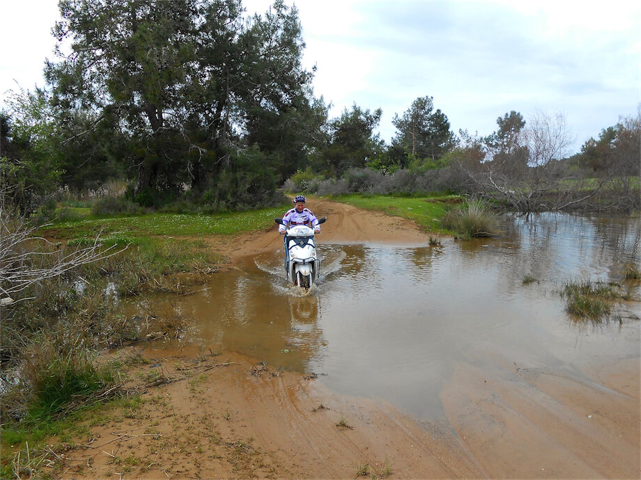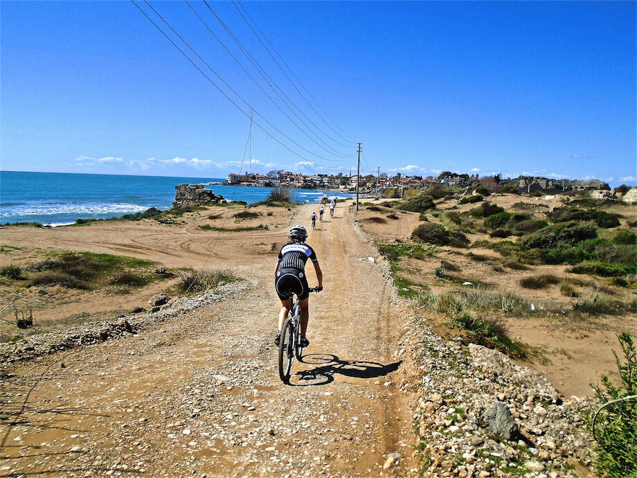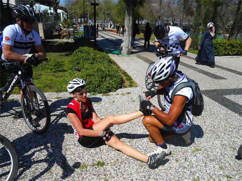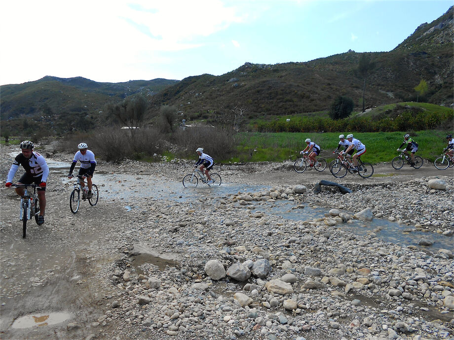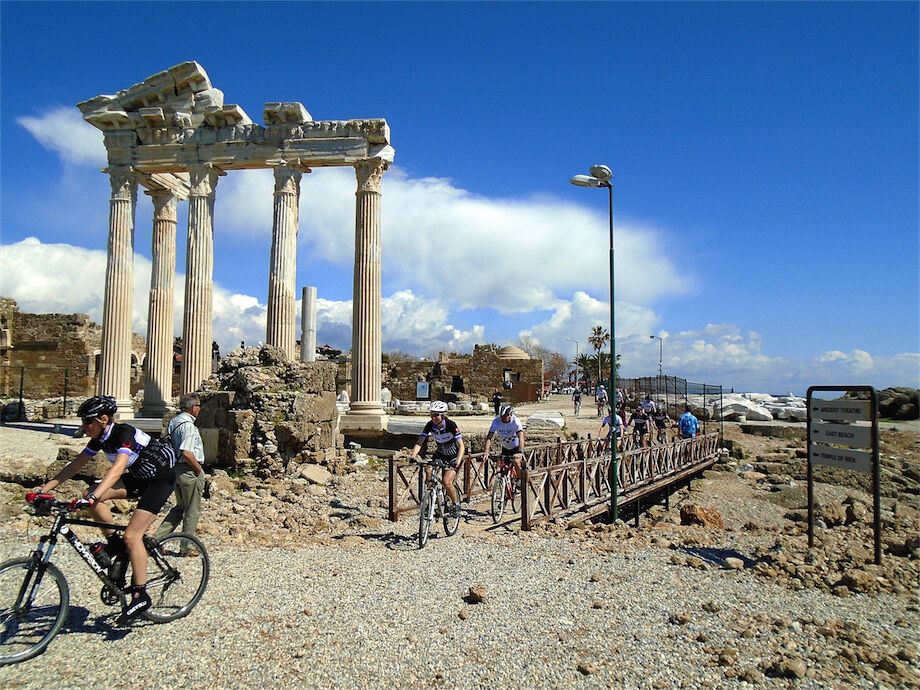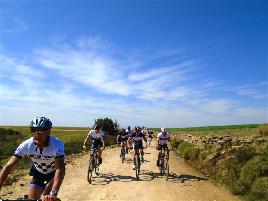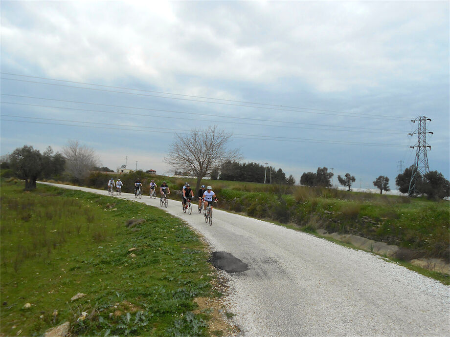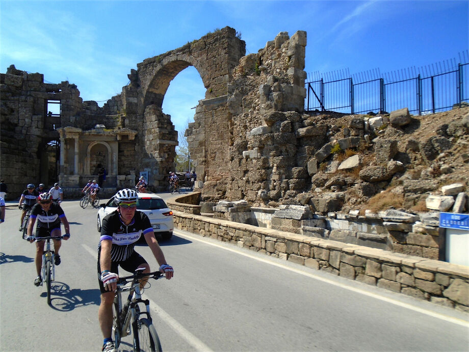 Zon en bewolking. Met 2 groepen gefietst. Een groep geplande tocht langs Aspendos gedaan. 66 km. Andere groep door zware bewolking op hun route een nieuwe tocht gedaan met nieuwe off-road wegen. 73 km