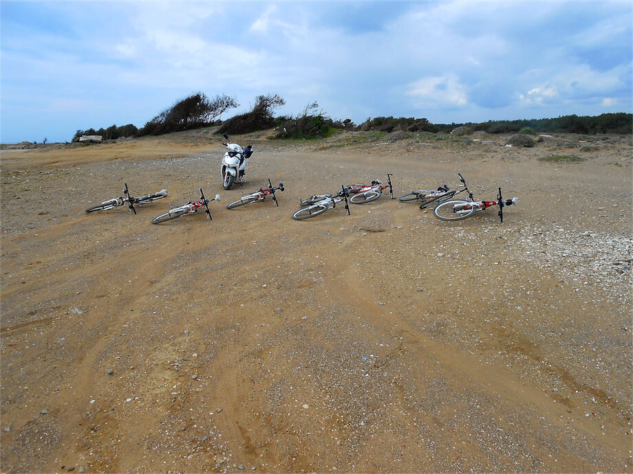 Zwaar bewolkt met af en toe een regenbui. Deze morgen vertrokken bij droog weer met 3 groepen. 2 groepen die in de heuvels en bossen van Yenikoy en Seki een mooie off-road fietstocht hebben gedaan. Die hebben onderweg eventjes moeten gaan schuilen, voor de rest van de tocht bijna regenvrij kunnen fietsen. Respectievelijk hebben 56 km - 53 km en 45 km gefietst.
