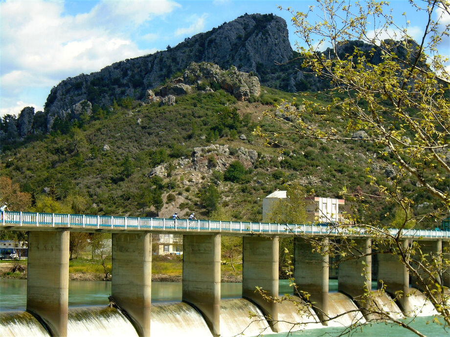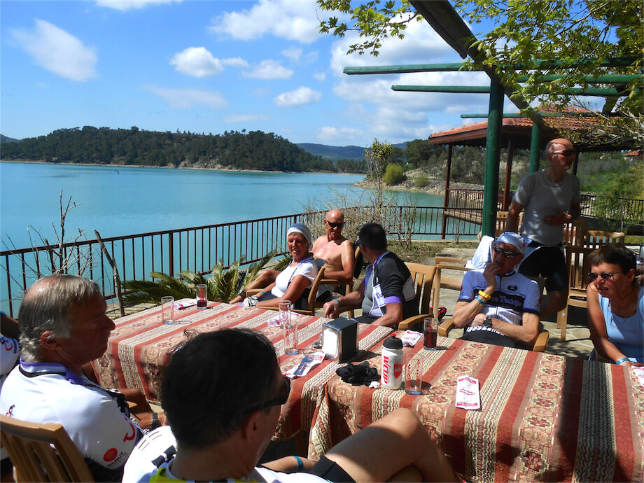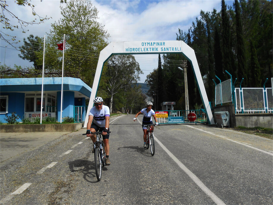 Prachtige dag, volop zon en helderblauwe hemel. Met 2 groepen gefietst. Een langs het stuwmeer van de Green Canyon en watervallen van Manavgat. 100 km en 1286 hoogtemeters. Andere groep langs de watervallen van Manavgat en stuwdam aan het meer van Oymapinar 68 km en 557 hoogtemeters.