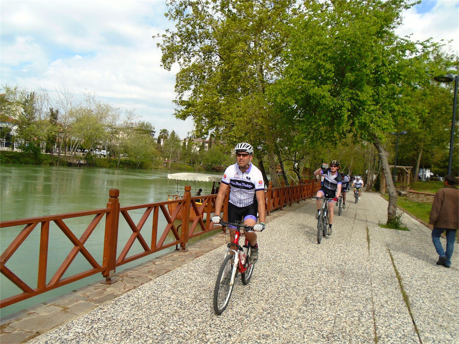 Mooi weer. Met 2 groepen gefietst. De ene groep langs Side met een terrasje aldaar en 40 km op de teller. Andere groep langs de grote moskee Manavgat, de scheepswerven van de toeristen boten en de oostelijke zijde van de Manavgat rivier. 64 km