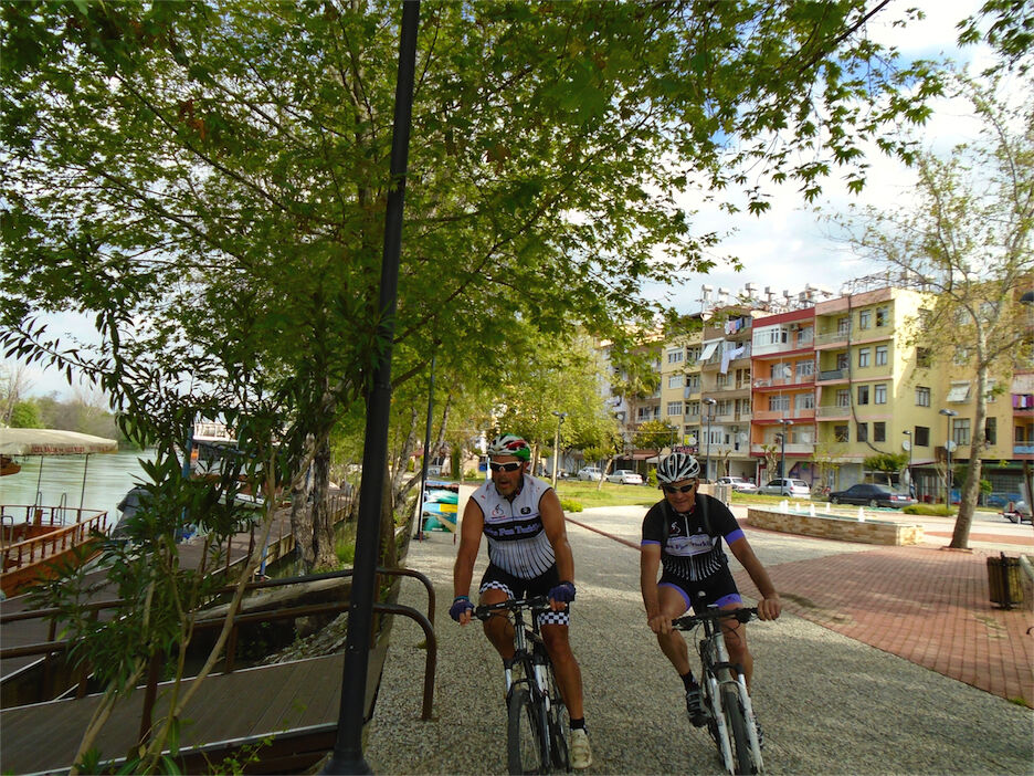 Het weer zie je op de foto's. Niet goed, maar heéél goed !!! Met 2 groepen naar Manavgat gefietst en terrasje gedaan aan de rivier bij Taxi Pub. Respectievelijk 59 km en 46 km. In de namiddag met een groepje Noorse jongeren 35 km meegefietst.