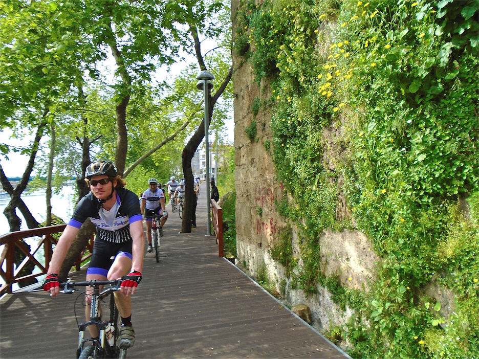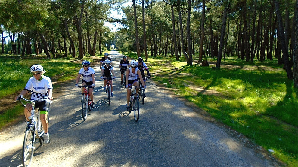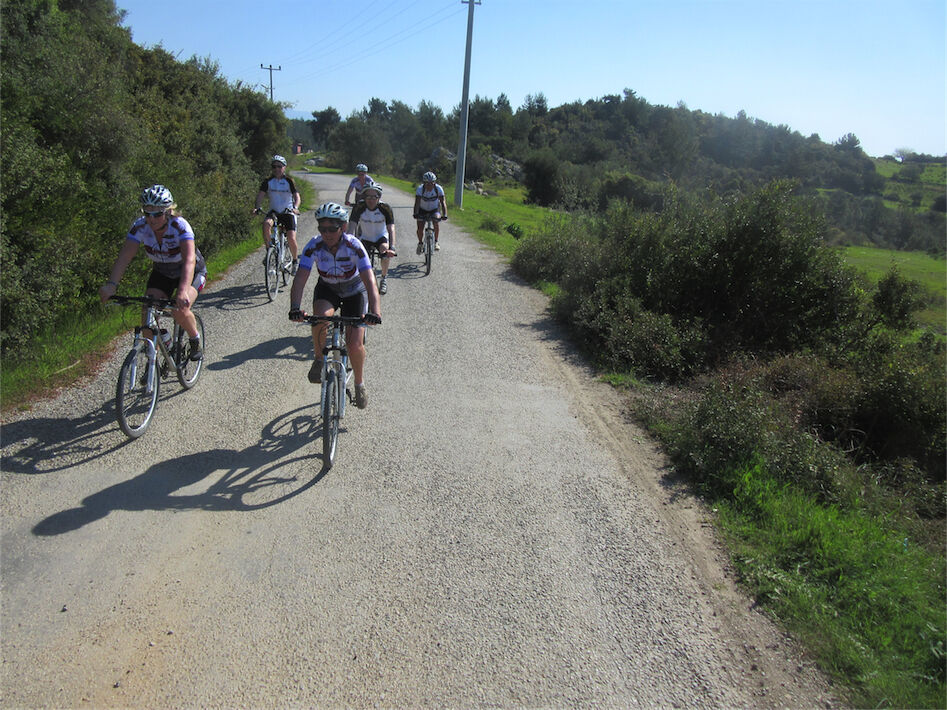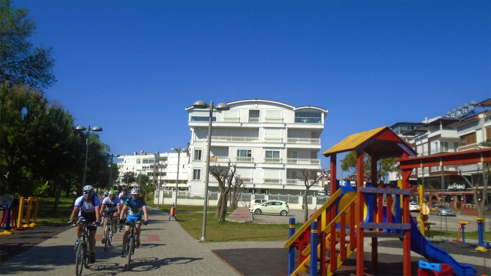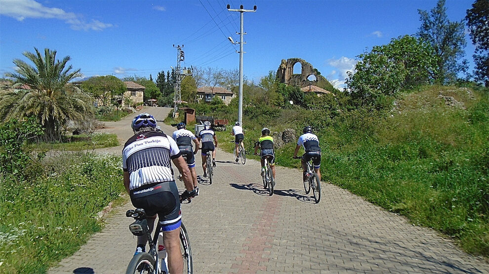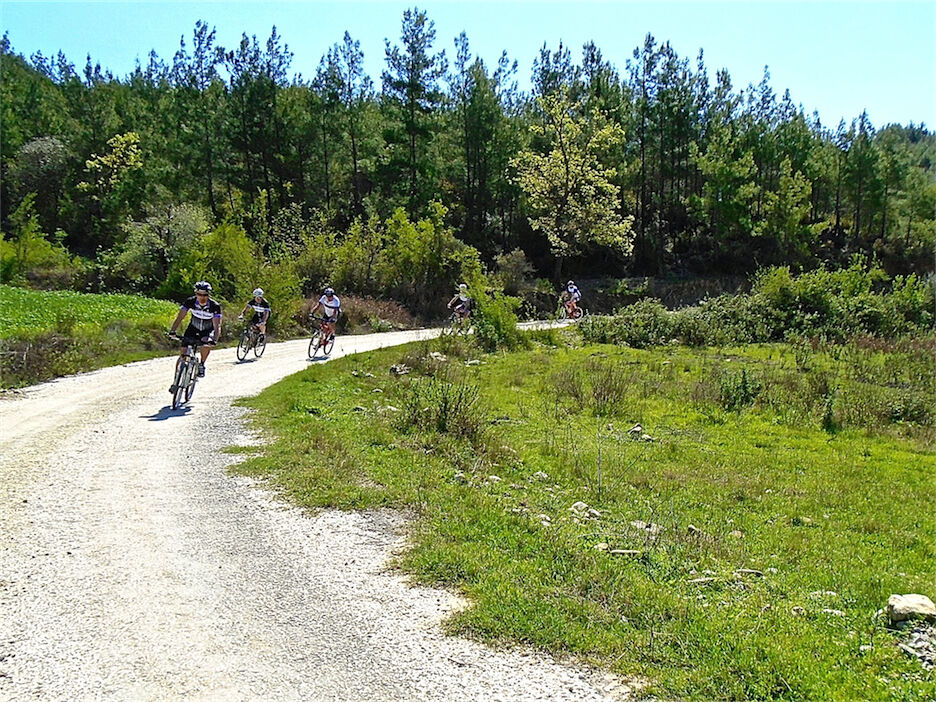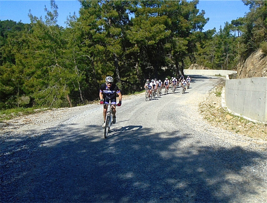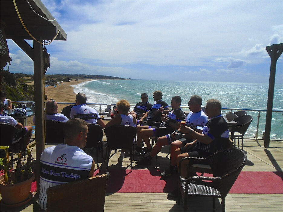 Volop zon en schitterend weer. Met 2 groepjes gefietst. De mindere geoefende fietsers 45 km en een typisch Turks terrasje. Andere in de heuvels en bossen van Kalemder op de mooie volledig verkeervrije off-road boswegen 54 km en 645 hoogtemeters.