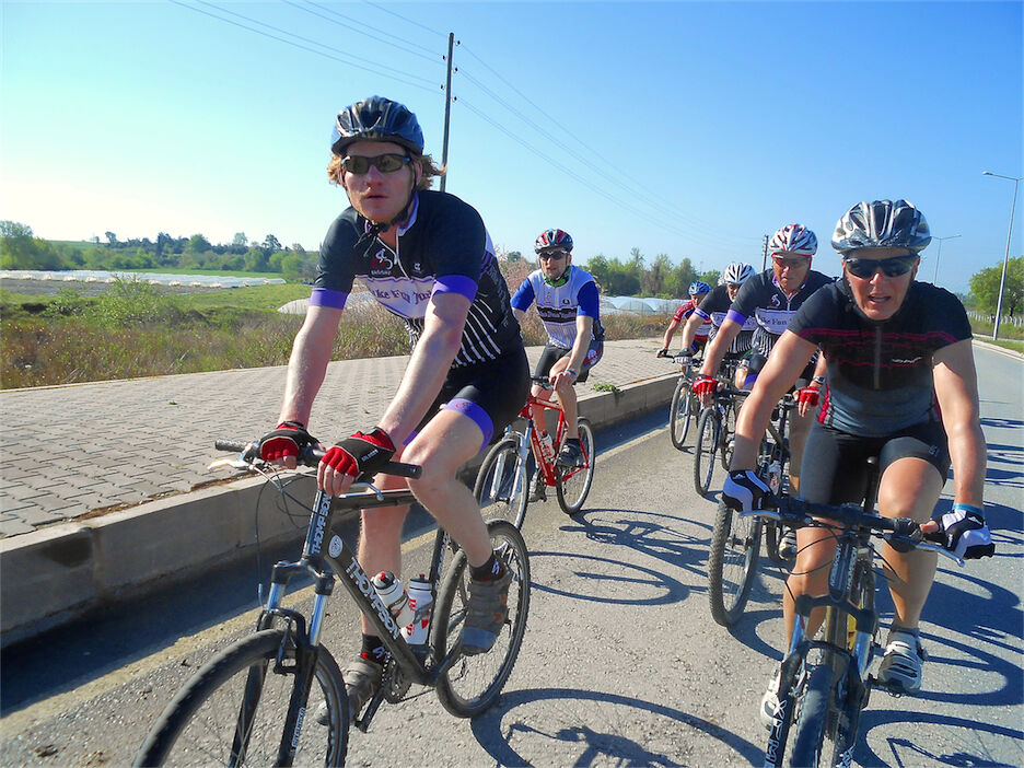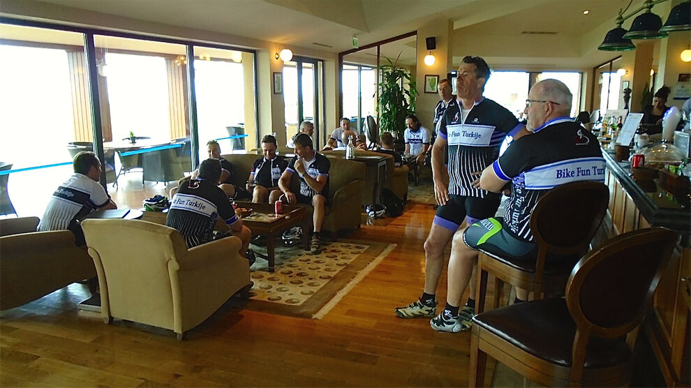 Zwaar bewolkt met af en toe een regenbui. Deze morgen vertrokken bij droog weer met 3 groepen. 2 groepen die in de heuvels en bossen van Yenikoy en Seki een mooie off-road fietstocht hebben gedaan. Die hebben onderweg eventjes moeten gaan schuilen, voor de rest van de tocht bijna regenvrij kunnen fietsen. Respectievelijk hebben 56 km - 53 km en 45 km gefietst.