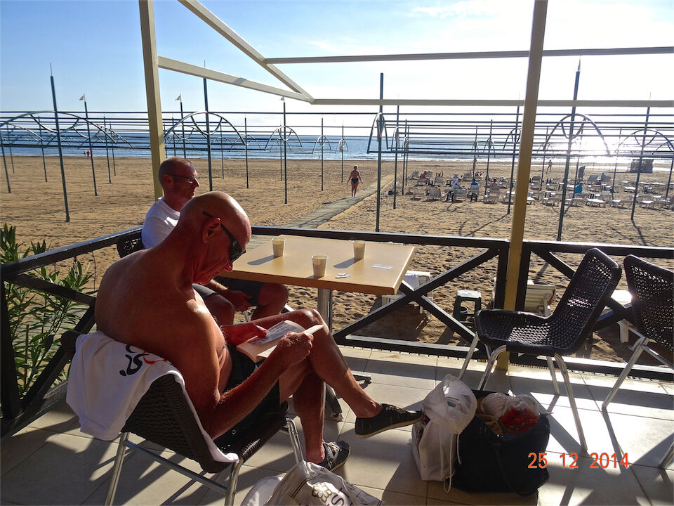 Geen witte kerst maar wel een heel mooie kerstdag. Verkenningstocht gedaan langs de Manavgat rivier, veel off-road en bijna volledig vlak. 70 km. Temperatuur in de schaduw op ons terras om 13u. Na de middag genoten van de zon, gekregen boek van en over Hennie Kuiper gelezen en kwartiertje gaan zwemmen in zee. Zelfs tijdens de kortste dagen kan het weer hier geweldig meevallen. bij Hotel Side Star Resort *****.