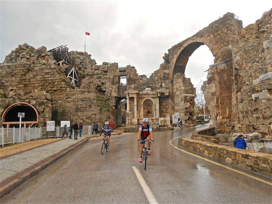 Schitterend weer. Volop zon en een helderblauwe hemel. Naar Aspendos gefietst via enkele nieuwe off-road wegen. 64 km en 465 hoogtemeters bij Hotel Side Star Resort