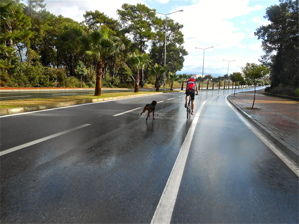 Na gisteren een dag met heel veel regen, vandaag bewolkt met zooneschijn en ook nog enkele druppeltjes onderweg. Zondagsfietstocht met passage in Side. Tijdens onze fietstocht is een hond (dobberman) ongeveer 20 km met ons meegelopen. Een halve marathon met snelheden tussen de 25 à 30 km per uur. Nen hond met een superconditie. Terug in hotel 60 km op de teller. bij Hotel Side Star Resort *****.