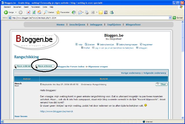 Lees je een bestaand onderwerp en je wil iets antwoorden op dat éne onderwerp (en dus geen nieuw onderwerp starten), dan klik je op "Nieuw antwoord" bovenaan met je linkermuisknop.