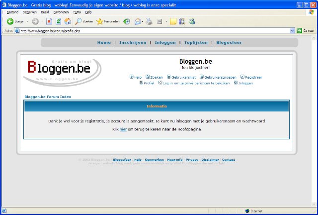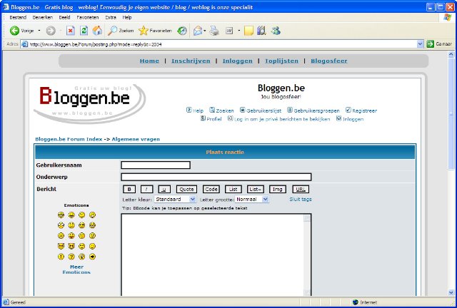 Nu zien we het berichtje staan. Ook àlle andere bezoekers van Bloggen;be kunnen het nu zien staan! Zo, dit was het. Je kan nu surfen naar de verschillende forums, je kan de onderwerpen bekijken, de berichten lezen, je kan antwoordjes insturen en je kan zelf ook onderwerpen aanmaken. Er is verder nog veel meer mogelijk. Zoals je gegevens aanpassen (e-mail adres, onderschrift,...), je kan ook privé berichtjes sturen naar andere gebruikers, je kan opmaak gebruiken in je berichtjes, je kan berichten zoeken, enz. Dit kan je zelf uitproberen, je hebt nu de basiskennis. Het blogosfeer forum van Bloggen.be is gemaakt om met elkaar te communiceren. Je kan aan elkaar vragen stellen. Bovendien kunnen alle andere mensen de vragen ook lezen, zodat ze kunnen antwoorden indien ze het weten; maar ook kunnen anderen de antwoorden lezen, zodat iedereen er slimmer bij wordt. Maar uiteraard ook discussies zijn zeer mogelijk op het forum. Veel plezier op de Blogosfeer van Bloggen.be!