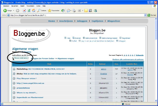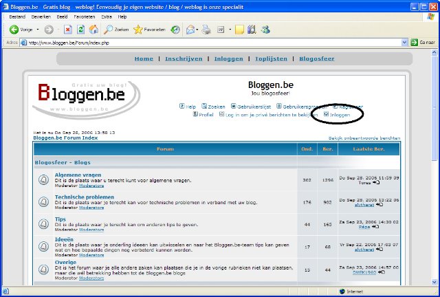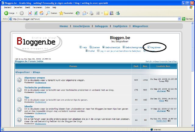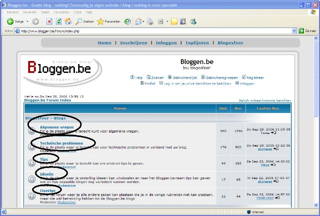Leer werken met de Blogosfeer: het forum van Bloggen.beDit is een stap voor stap handleiding om je wegwijs te maken op het forum van Bloggen.be (de blogosfeer). Het is niet moeilijk, je moet enkel weten hoe het moet, en dat leest u op deze pagina. Het forum is te vinden in het menu van Bloggen.be, rechtsboven bij "Blogosfeer". Klik met je linkermuisknop hierop.