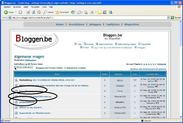Kort samenvatten hoe het in elkaar zit. We hebben dus hét forum van Bloggen.be. Hierin staan verschillende forums, met een bepaald thema. Dit kunnen thema's zijn als algemene vragen, ideeën,.... Deze structuur ligt min of meer vast en kan enkel gewijzigd worden door de mensen van Bloggen.be zelf. Het kan gebeuren dat een nieuw thema erbij komt indien er vraag naar is. In zo'n forum staan allemaal onderwerpen, die geplaatst worden door de bezoekers zelf. En in zo'n onderwerp heb je allemaal berichtjes. Het allereerste berichtje is het berichtje van de persoon die het onderwerp heeft aangemaakt. Daaronder zie je alle antwoorden en berichten van de andere bezoekers, alsook eventueel antwoorden van de maker van het onderwerpje.